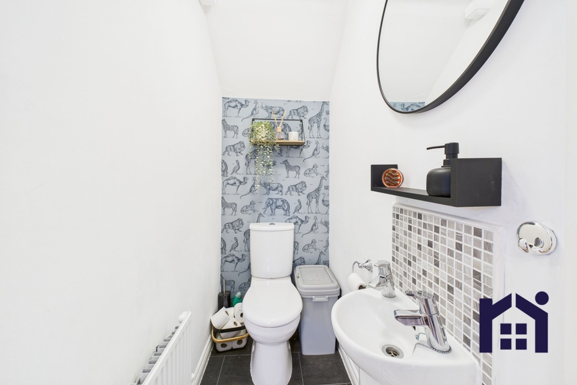 To the front, the tarmacadam driveway accommodates two vehicles, while an additional crushed slate driveway provides parking for a third and leads past mature hedging to the main entrance. Step into the welcoming hallway, with a cloakroom off comprising wc and wash hand basin.