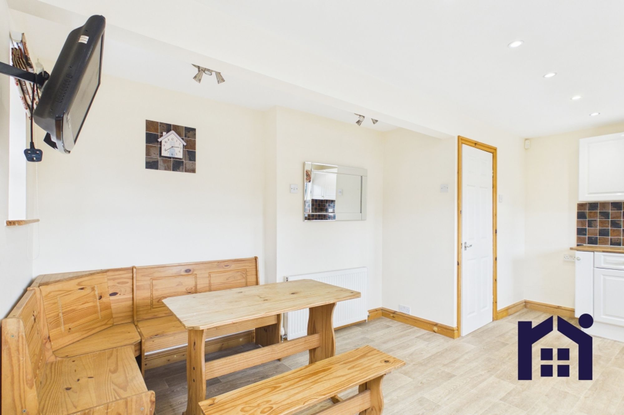 - Bright living room to the front and a stylish open-plan kitchen dining room with integrated appliances and island seating