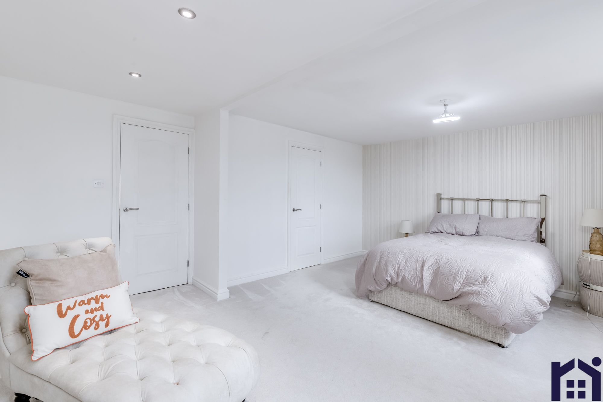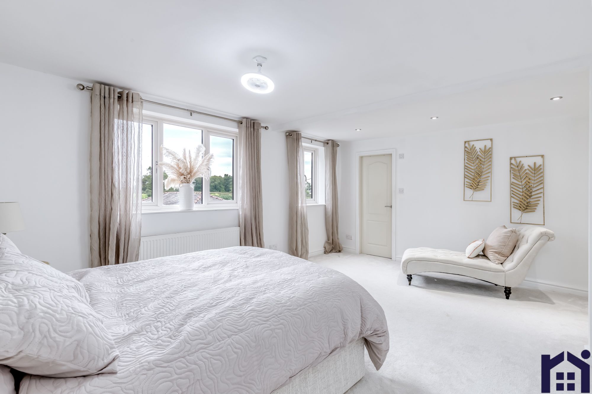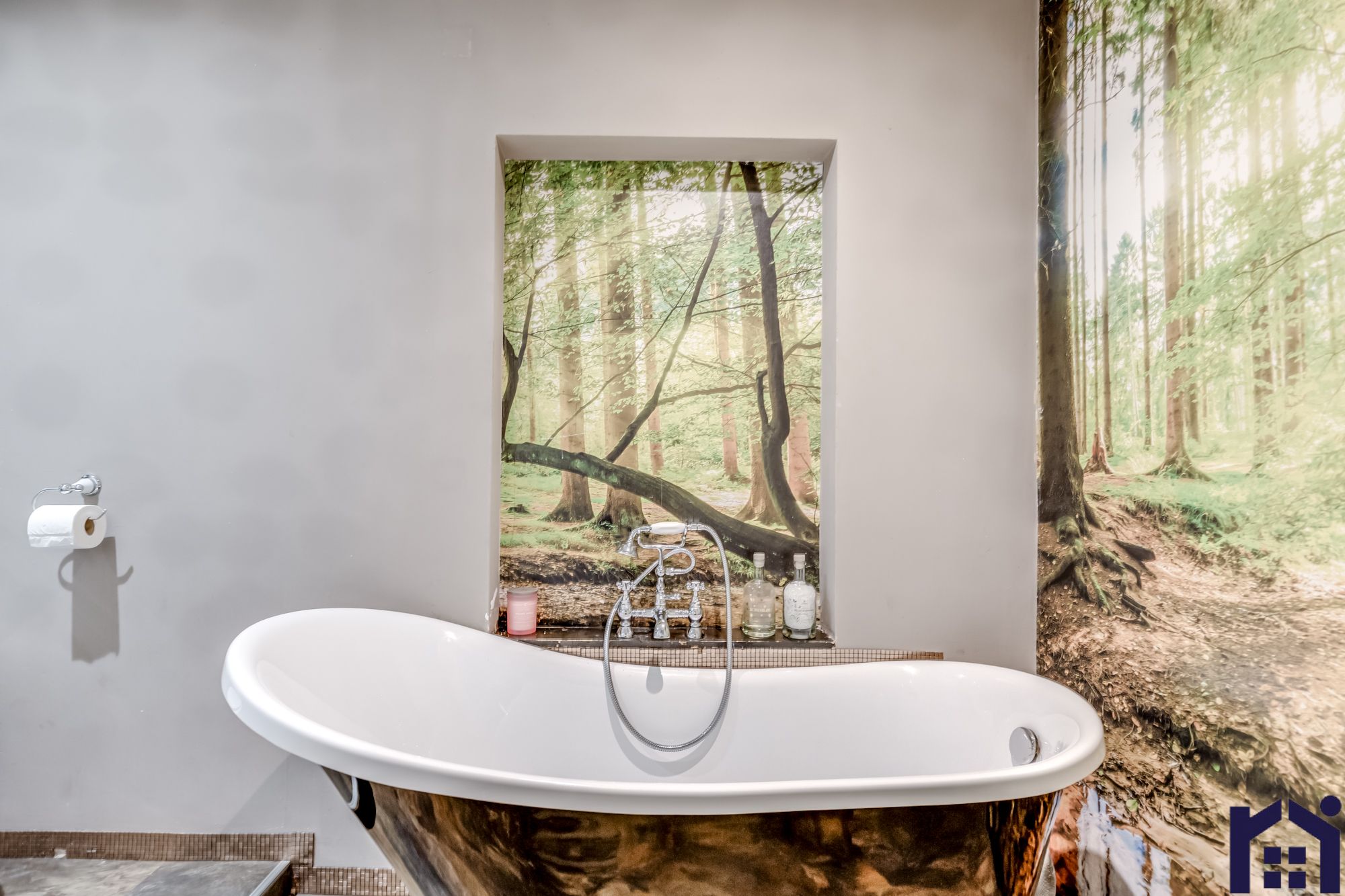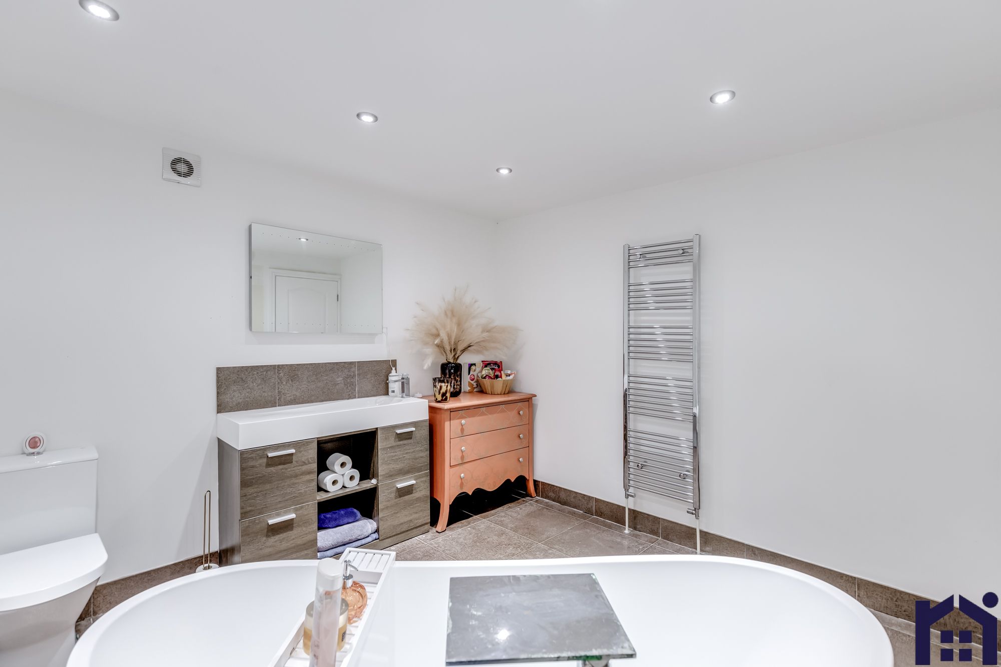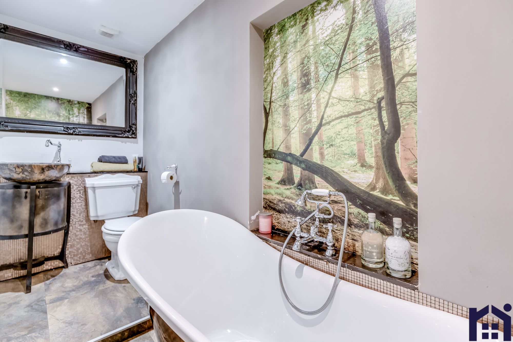 Stairs lead up to the first floor landing with the master bedroom overlooking the land to the rear and having walk in wardrobe and en suite comprising rainfall mixer shower in cubicle, ladder heated towel rail, wc and wash hand basin on floating vanity. There are two further double bedrooms, one of which is enjoying life as a gym, supported by the sumptuous family bathroom comprising free standing double ended bath, wc, teardrop wash hand basin on vanity and two ladder heated towel rails.