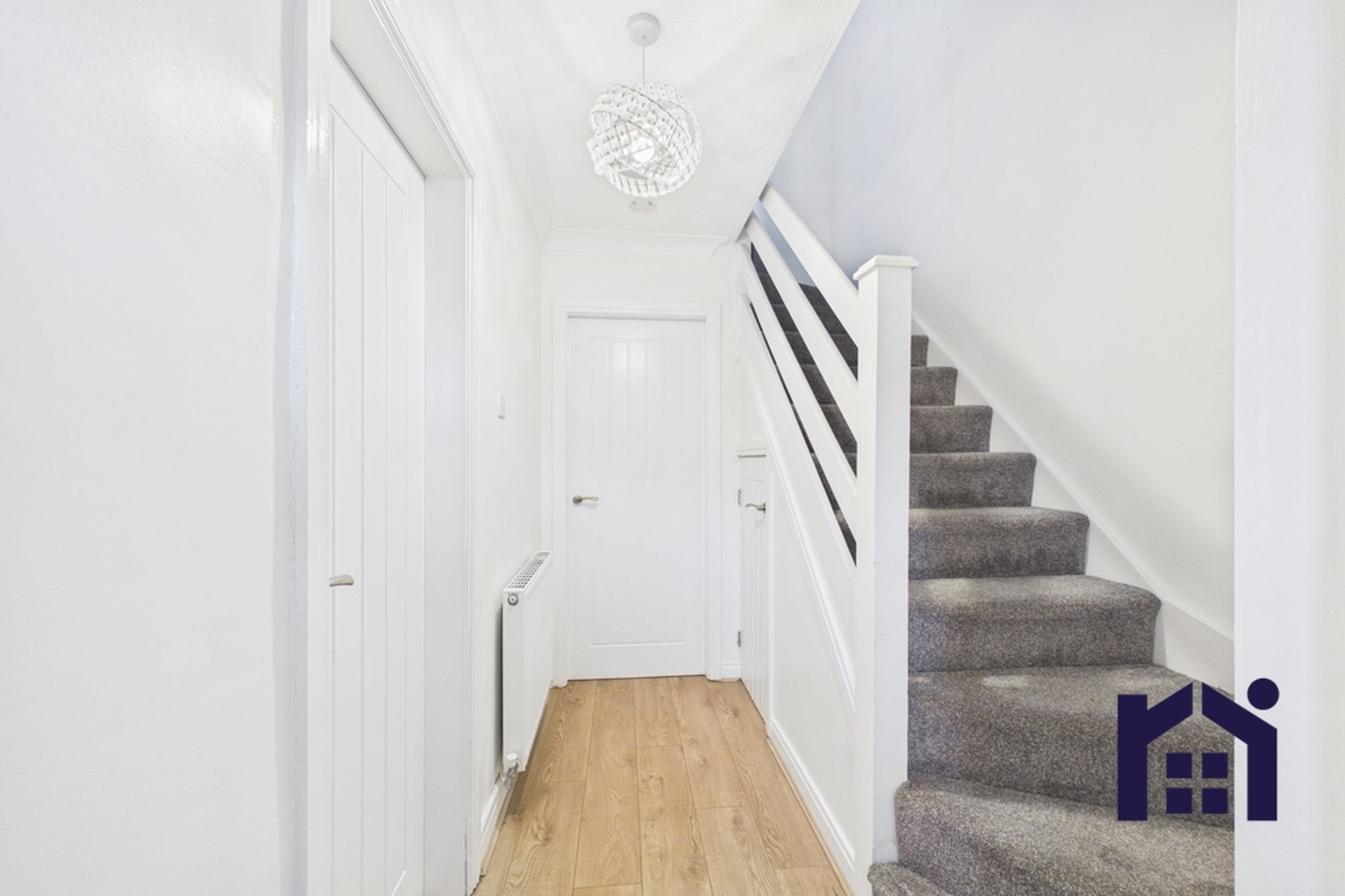 Upon entering, the entrance hallway provides a useful storage cupboard. To the front of the property is a modern fitted kitchen featuring laminate flooring, part-tiled walls and a range of wall and base units. The kitchen is well-equipped with a gas hob, oven, extractor fan, sink and drainer and integrated fridge freezer and washing machine.