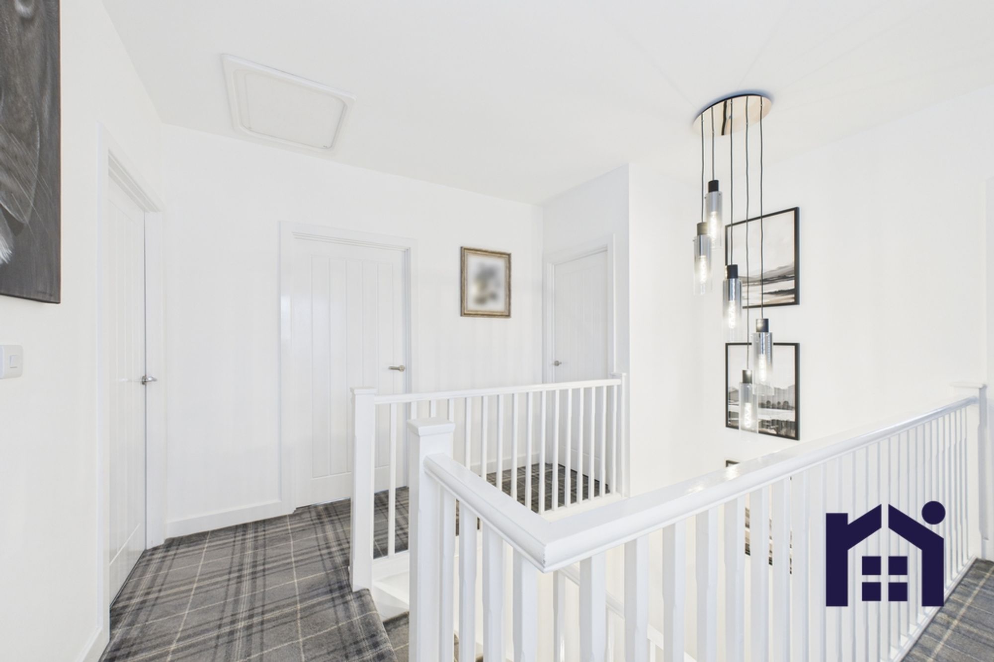 The second floor also benefits from a reading area with guest suite having two further double bedrooms separated by a bathroom comprising mixer shower in cubicle, wc and wash hand basin, with all of the bedrooms having substantial eaves storage, one of which houses the comms centre for the property.