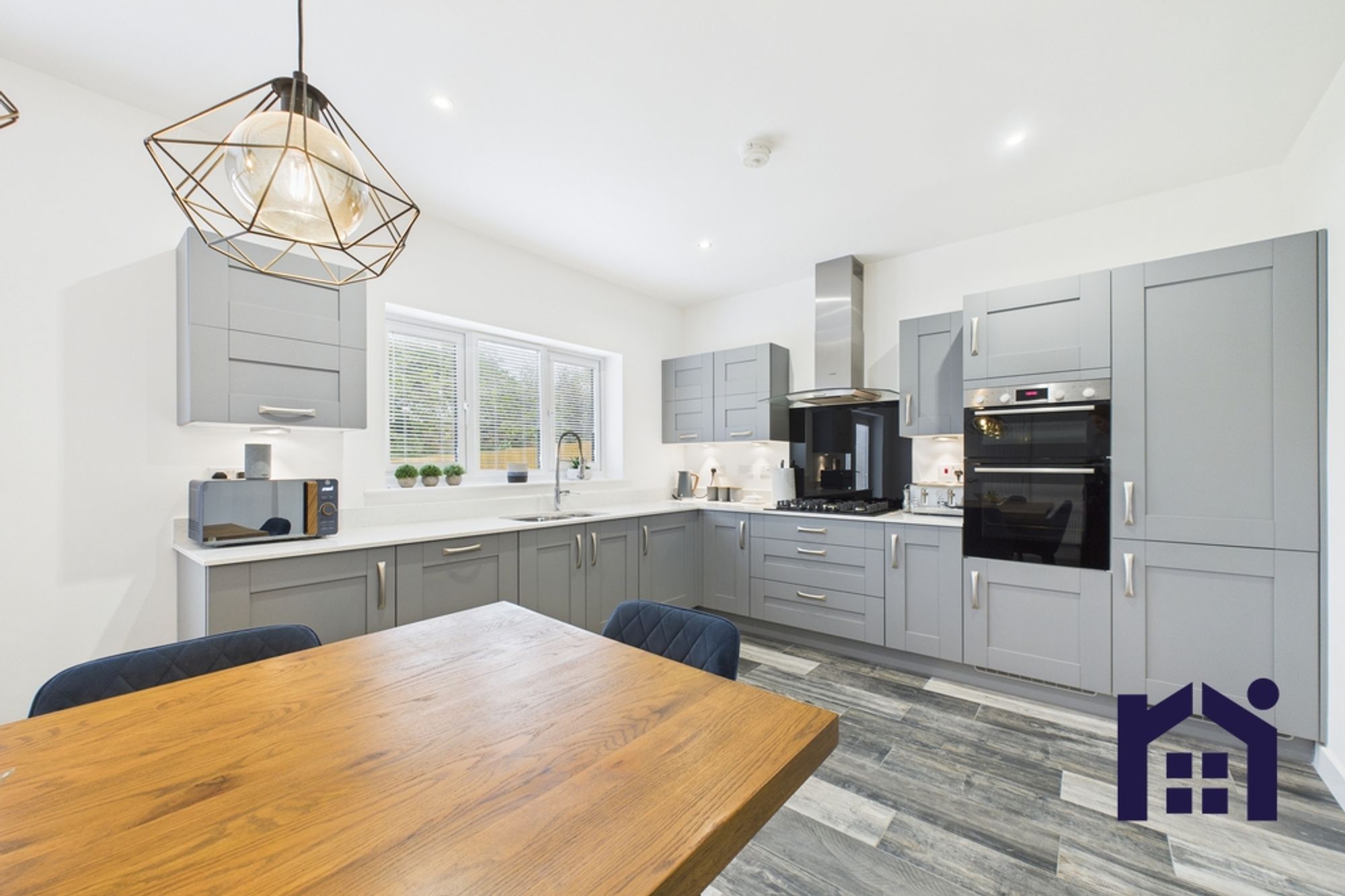 Naturally dividing into discrete areas for living with a focal point of wood burning stove, dining, and the kitchen comprising a range of wall and base units with quartz work surfaces, etched drainer, kettle tap, double electric oven and grill, wine cooler, dishwasher, five ring induction hob with pop up extractor and space for an American style refrigerator. A separate utility room is equally appointed with space, power and plumbing for additional appliances.