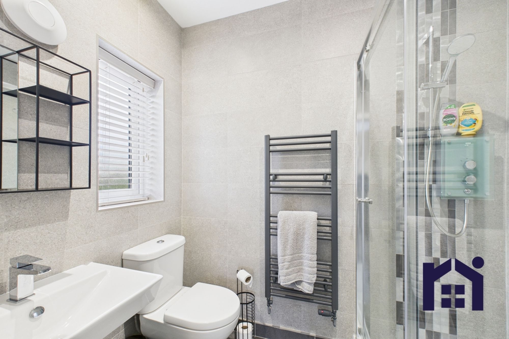 Bedroom two is almost as spacious and also benefits from en suite facilities as does bedroom three. There are two further double bedrooms served by a bathroom comprising bath, ladder heated towel rail, floating wash hand basin, rainfall shower in cubicle and tiled flooring and elevations.