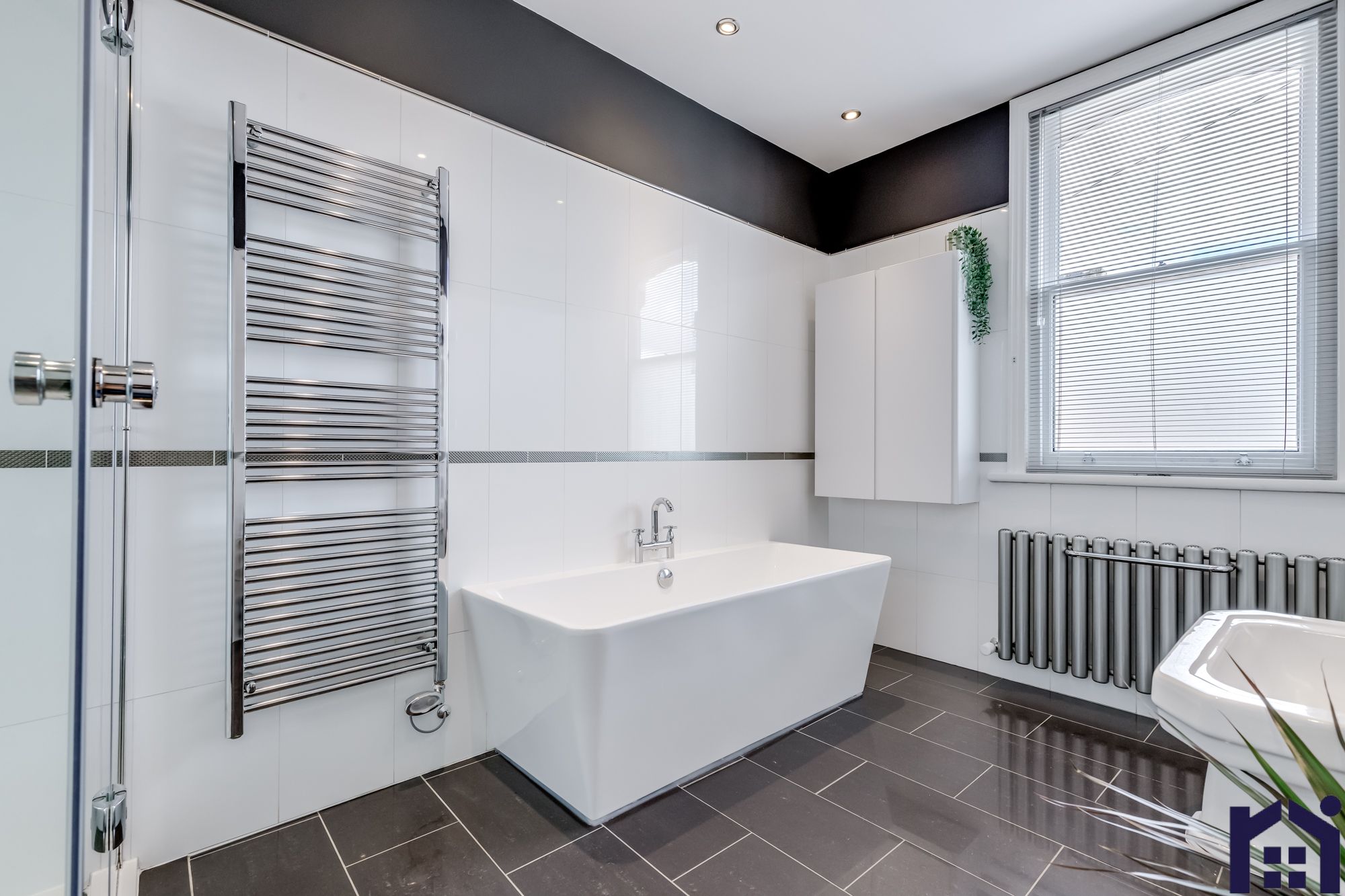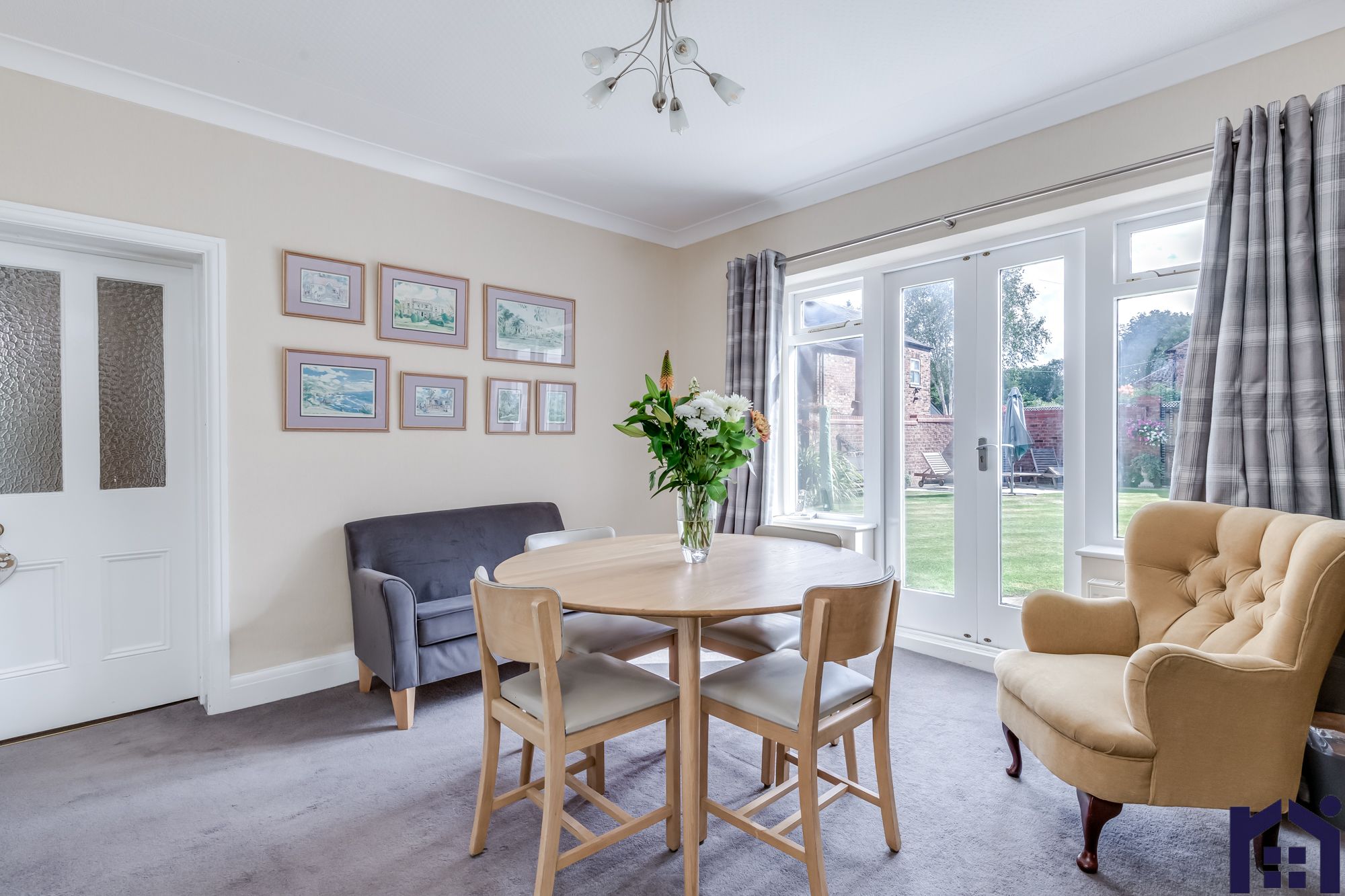Double doors lead to the dining room, with patio doors to the garden, and from which this element of the property could be a discreet annex with home office/bedroom five leading off, adjacent to an en suite comprising rainfall mixer shower in walk in cubicle, wash hand basin and vanity unit, wc, ladder heated towel rail and Ideal central heating boiler.