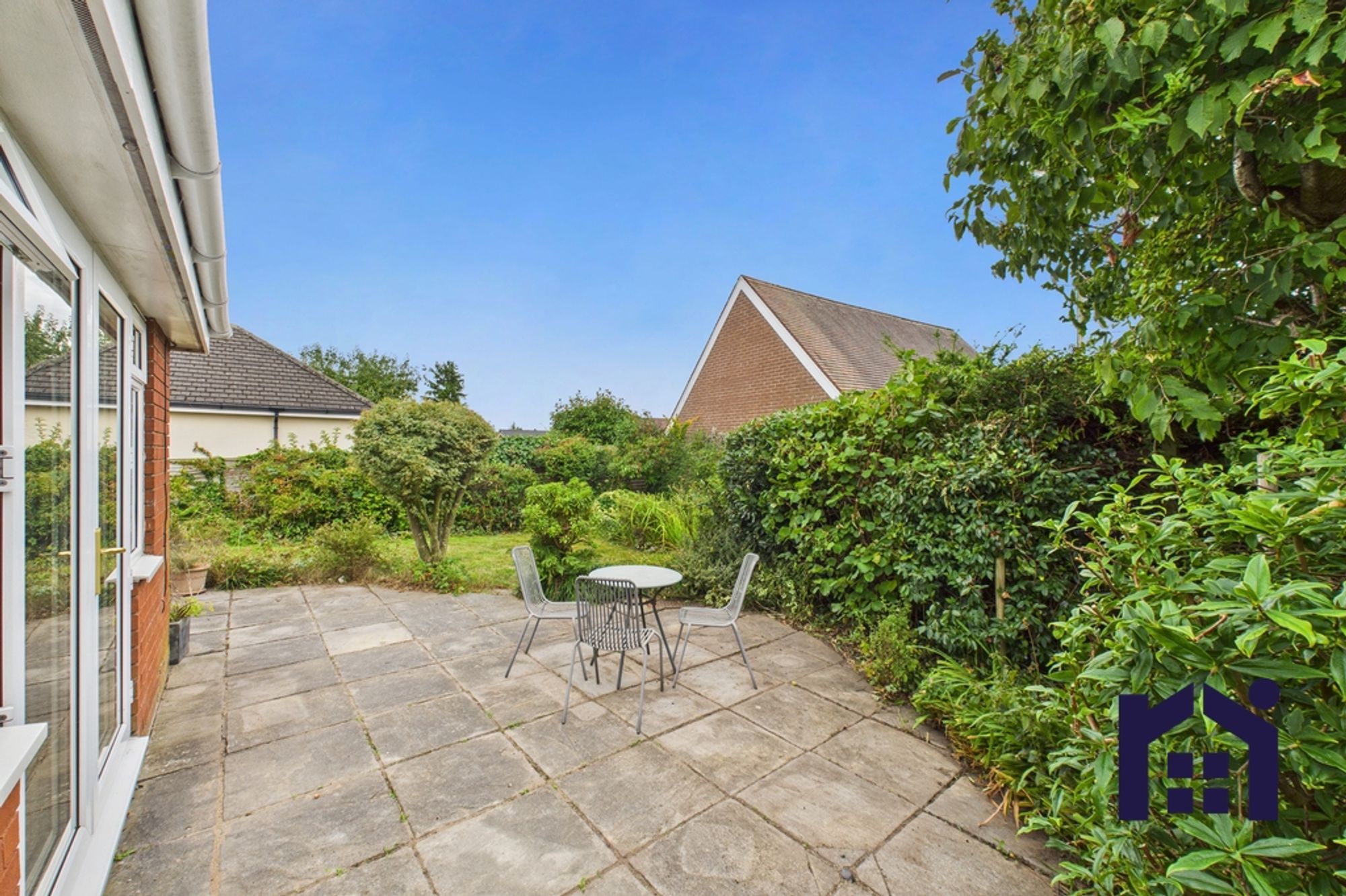 Externally, the private rear garden has sun terrace and lawn bordered by mature planting and the garage benefits from power and light.