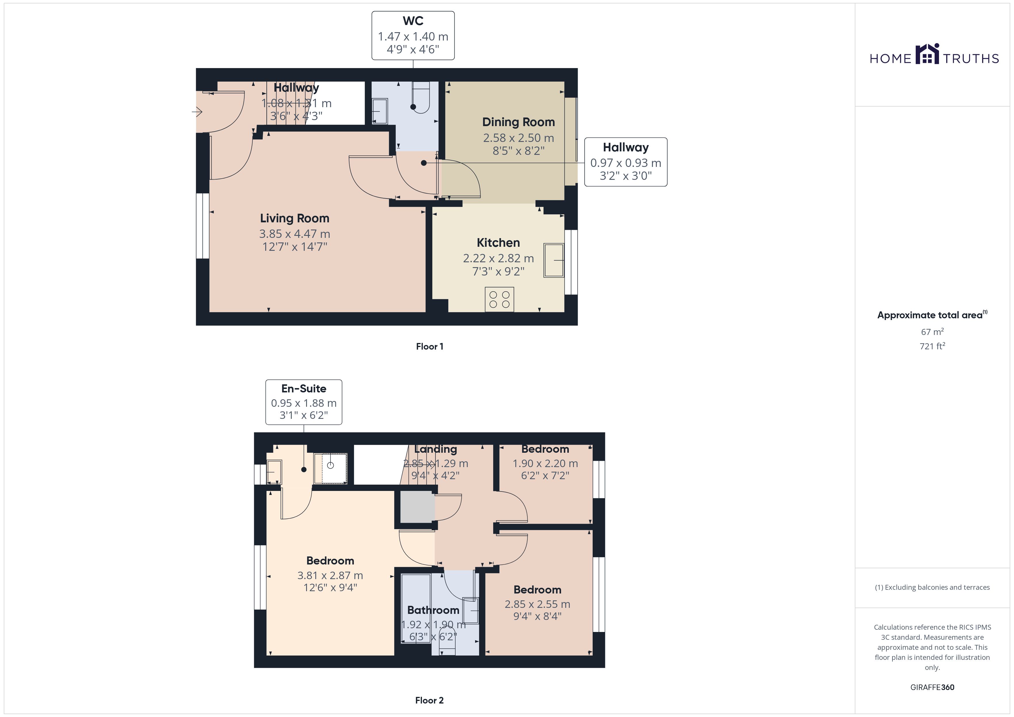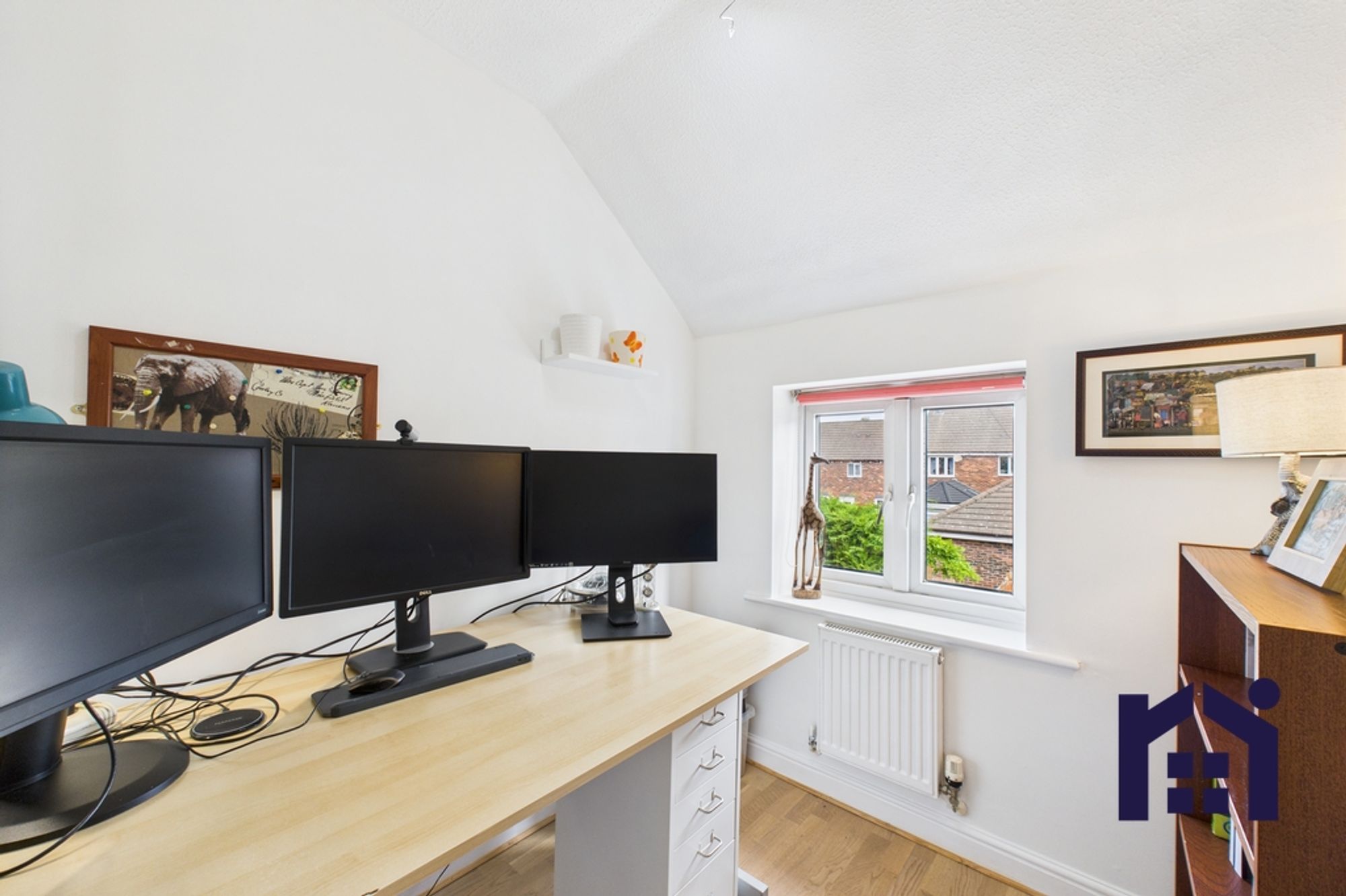 Back inside, stairs lead to the first floor landing with linen cupboard and access to the loft.  Bedroom one has fitted wardrobes and en suite comprising mixer shower in cubicle, wash hand basin and ladder heated towel rail.  Bedroom two is also a double, with bedroom three a comfortable single.  The elegant bathroom comprises bath with screen and mixer shower over, wash hand basin on floating vanity, wc and ladder heated towel rail,