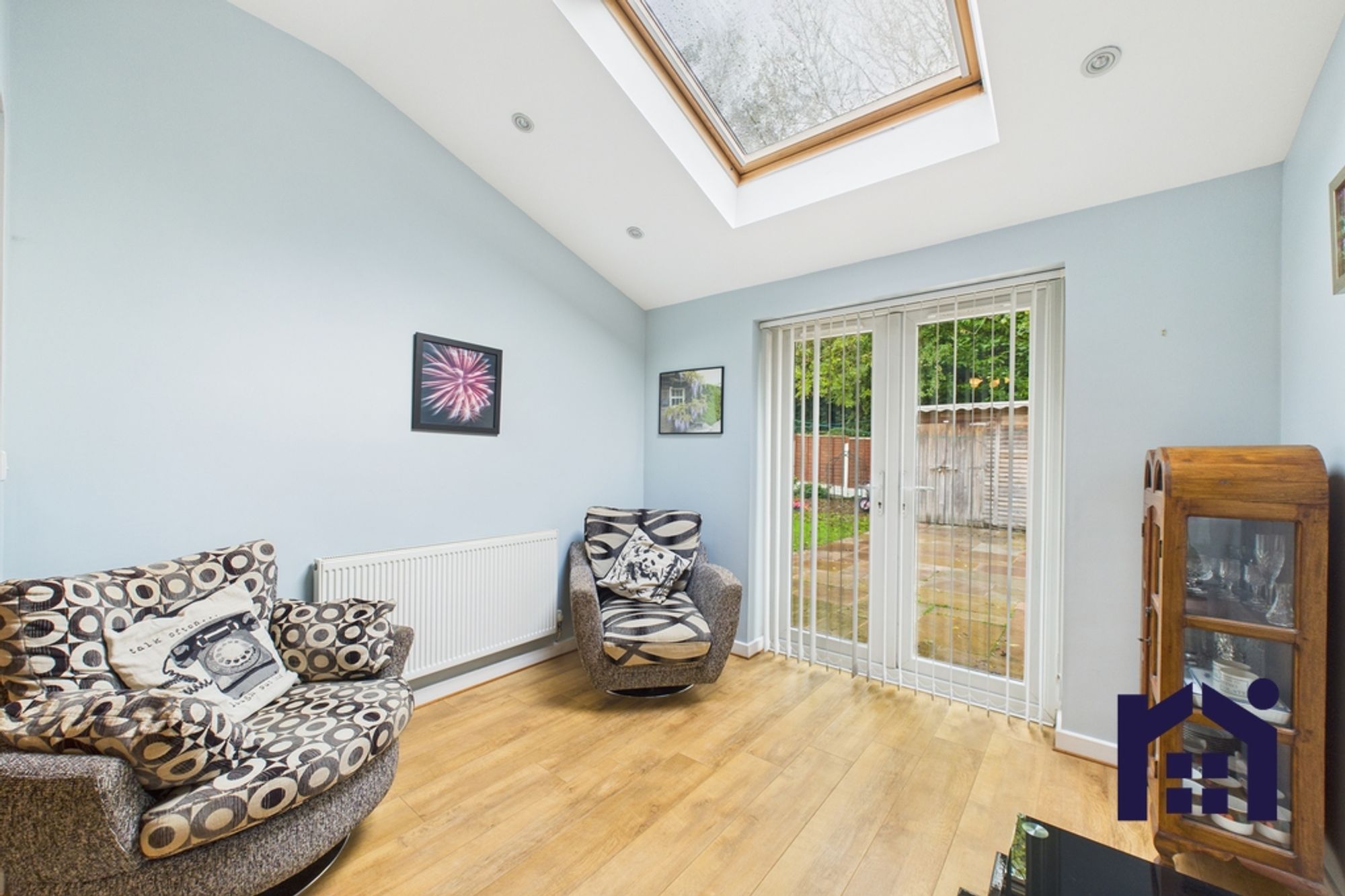 Step out through the bifolding doors onto the sun terrace, in the well proportioned west facing garden with spacious lawn, courtesy door to the garage, external power and thermally protected external tap.