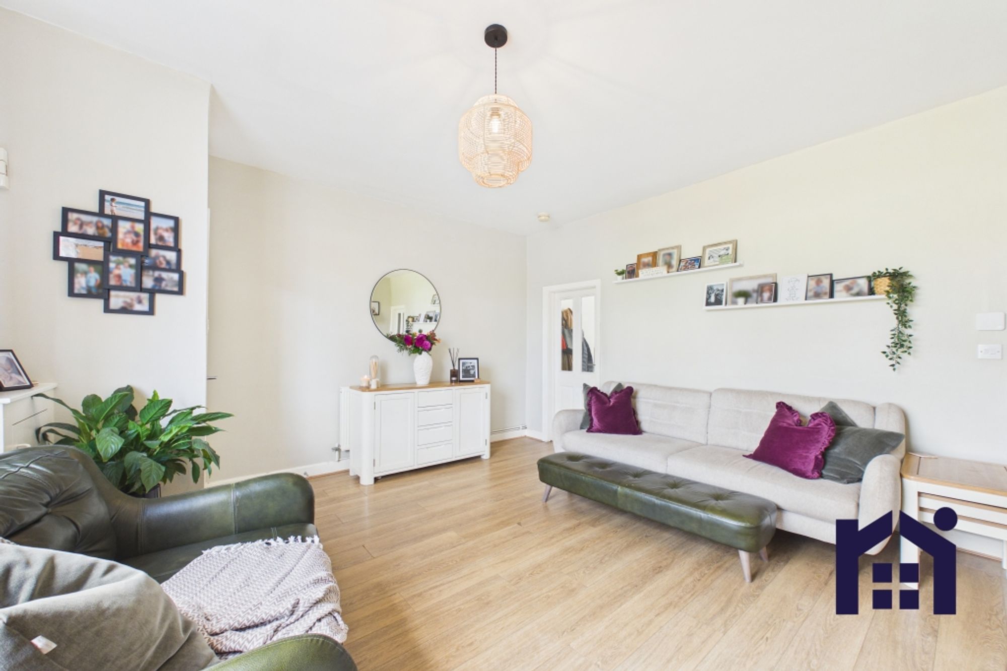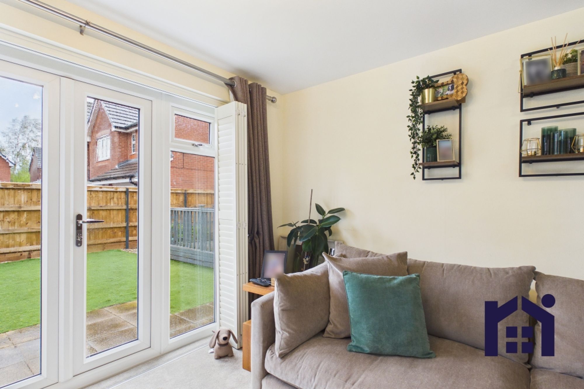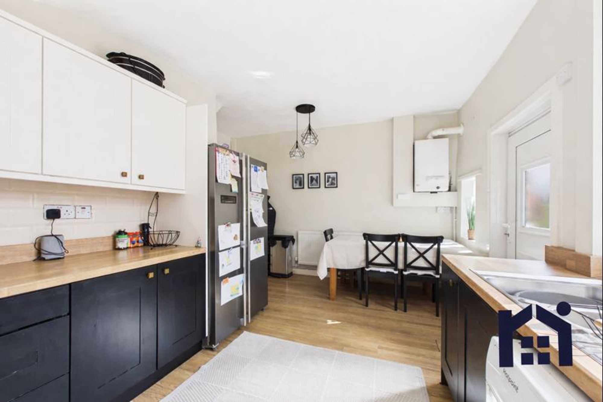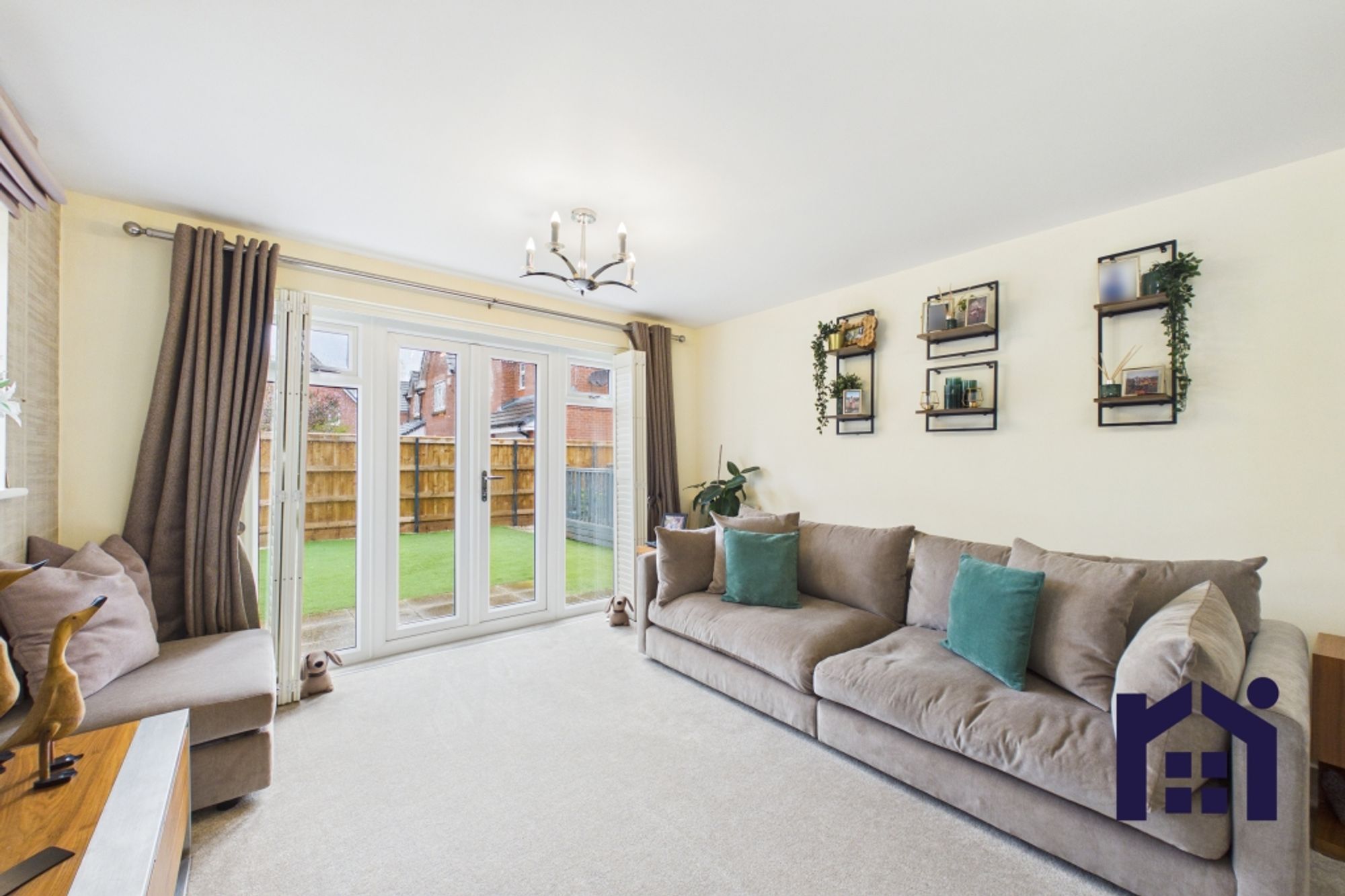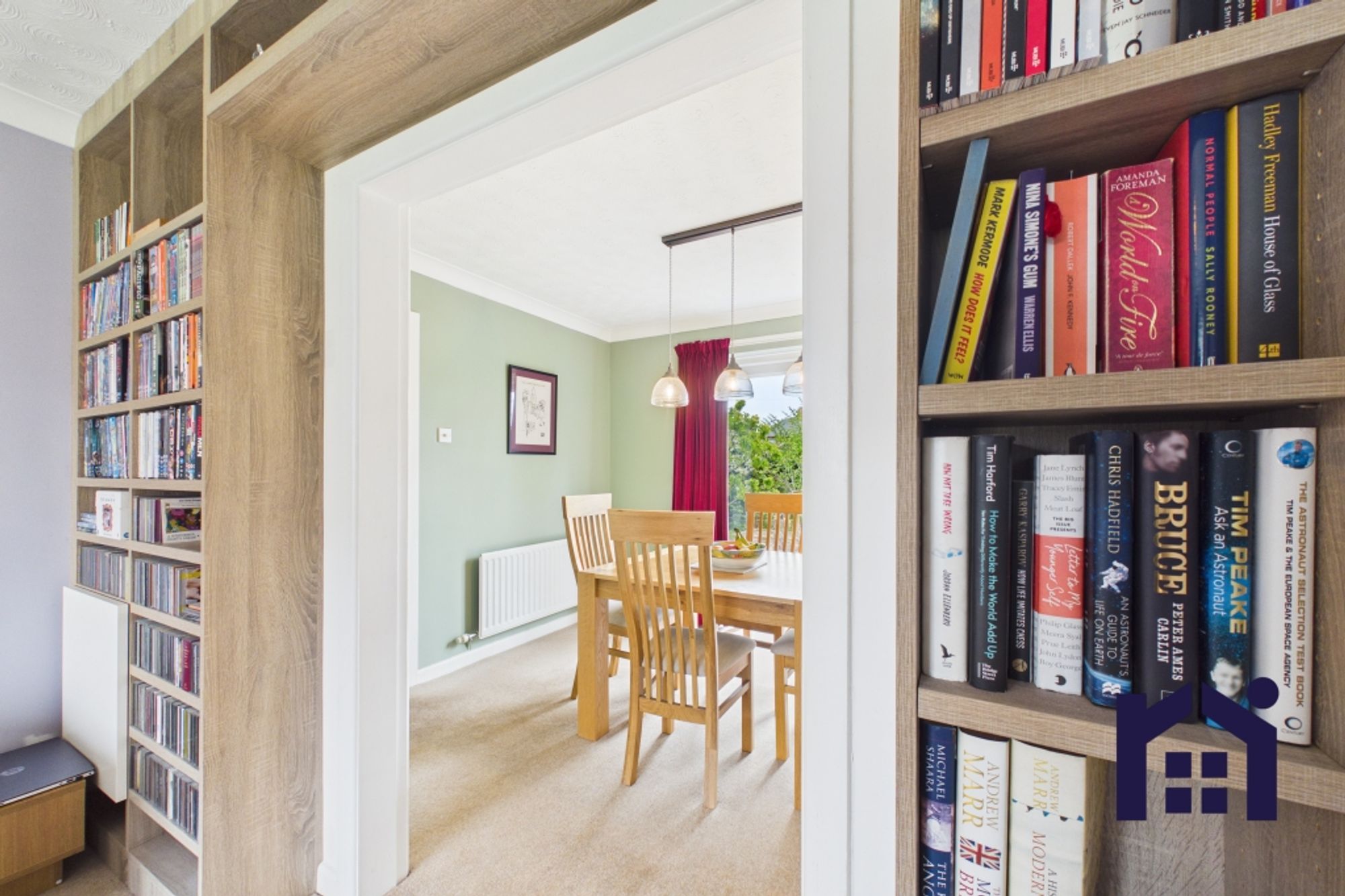 To the right, the living room benefits from a bay window and gas fire, with a large archway opening into the separate dining room, creating an excellent flow for entertaining. Patio doors lead out to the rear garden.