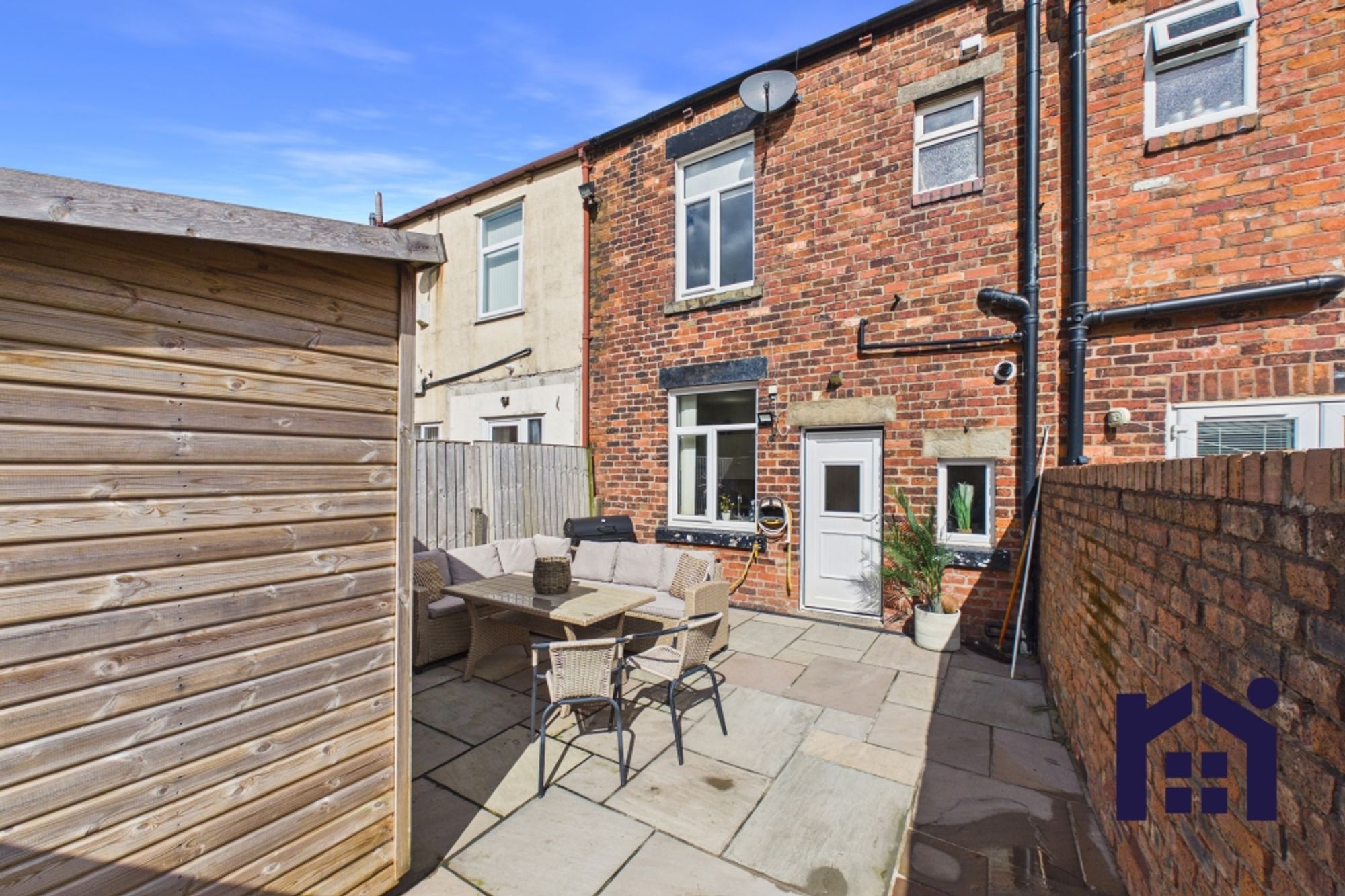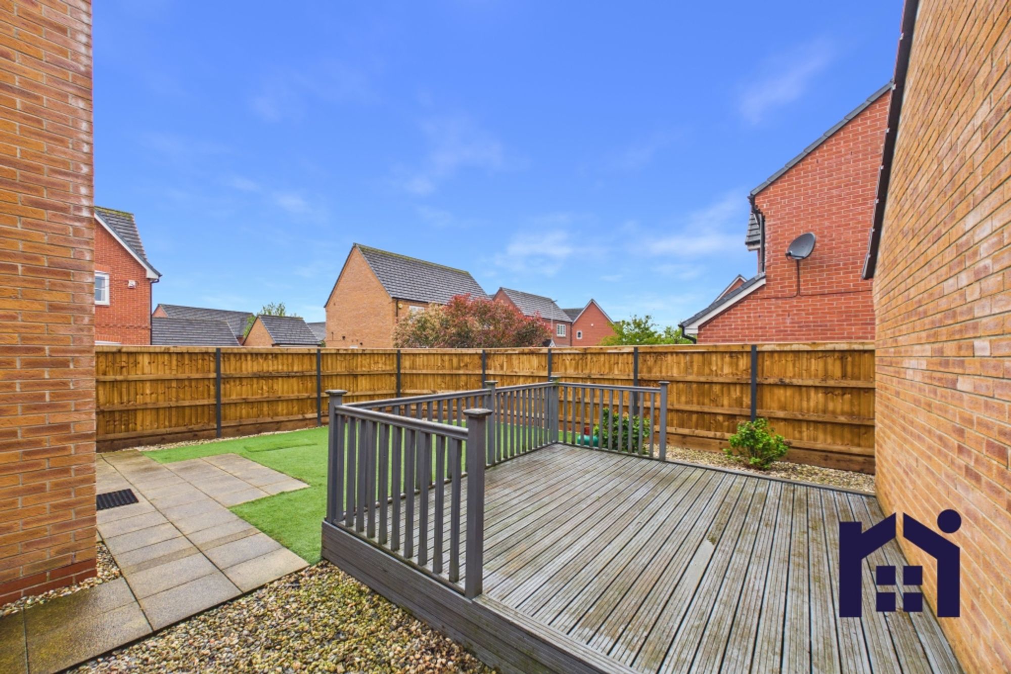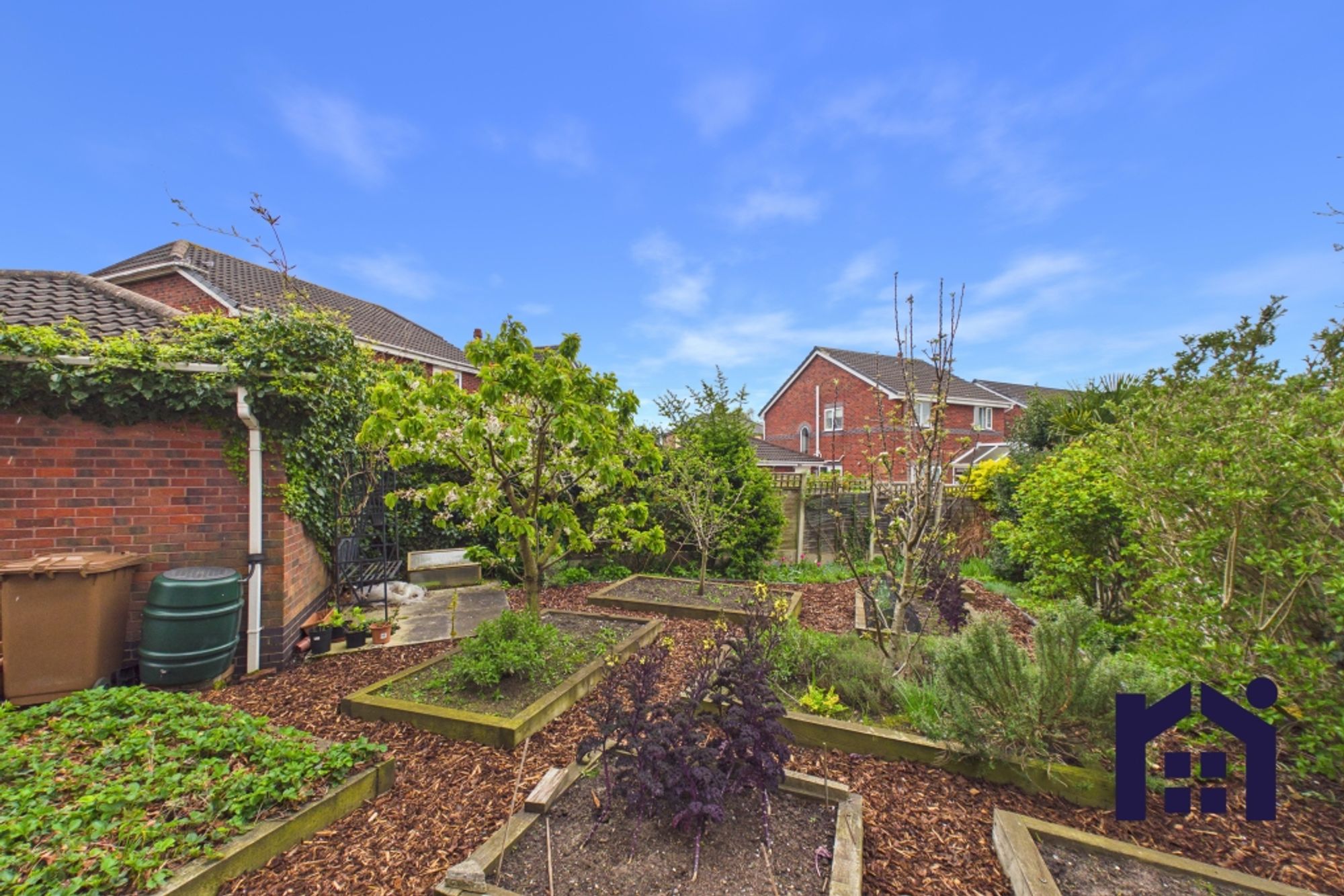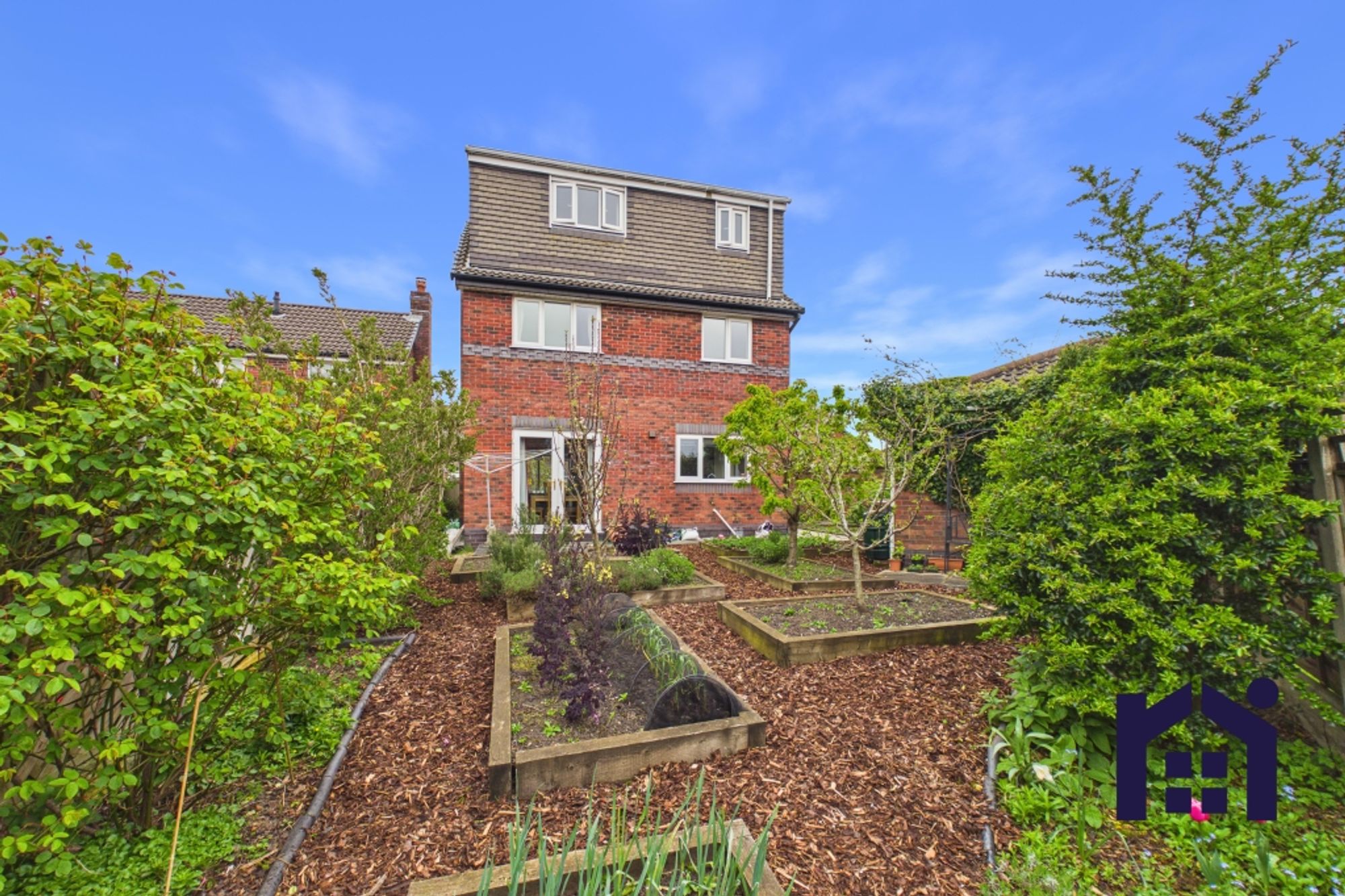 Step outside into the productive south-west facing rear garden, featuring raised beds and a variety of fruiting trees and bushes, including blackcurrant, gooseberry, raspberry, strawberry, cherry, plum and apple, along with a rhubarb patch — a fantastic space for keen gardeners and families alike.
