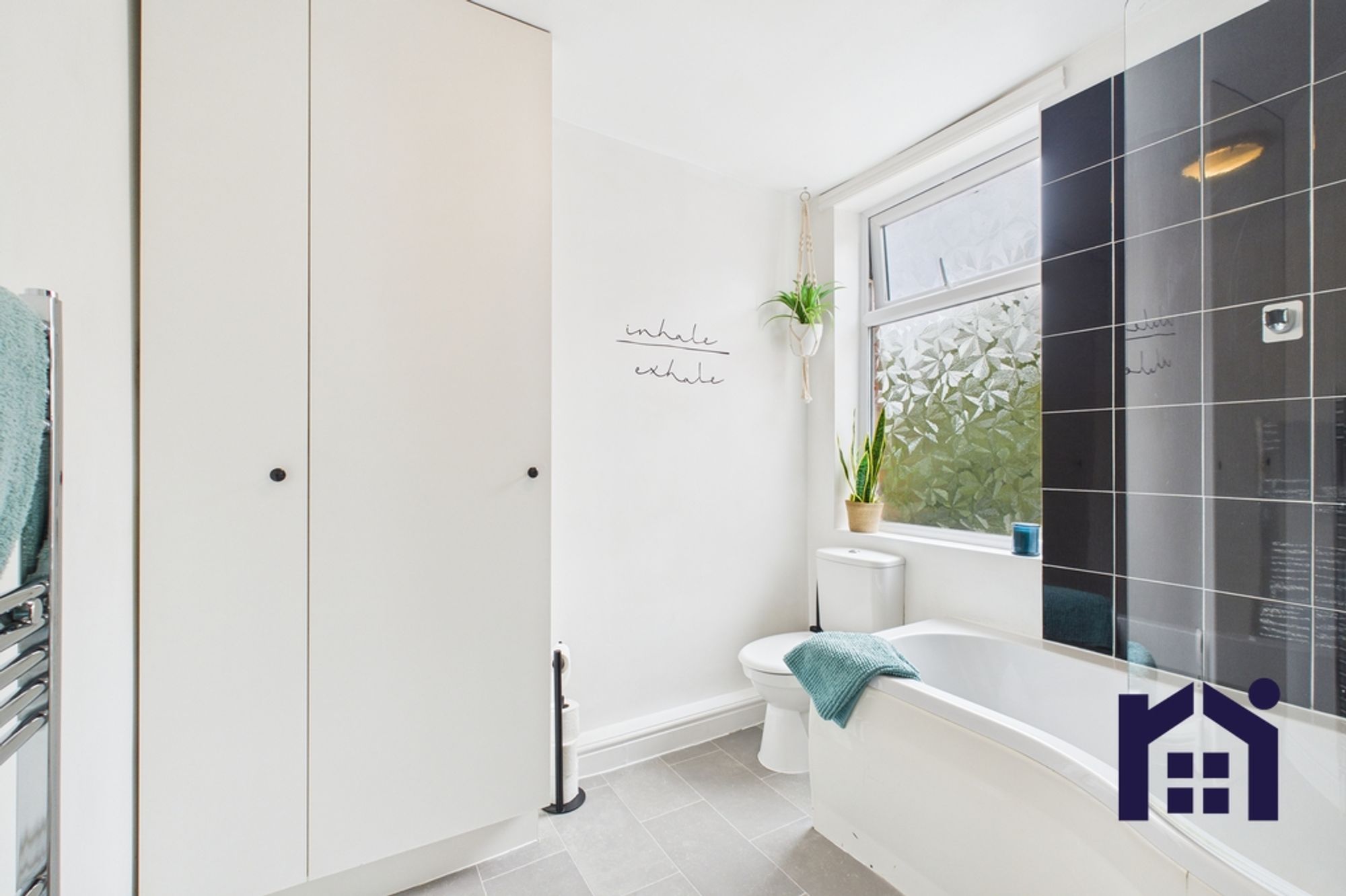 Back inside, stairs lead up to the first floor landing with ladder access to the loft with light and skylight. Bedroom one is a large double to the rear, bedroom two a second double and bedroom three a comfortable single both to the front. The spacious bathroom comprises bath with screen and shower attachment, wc, wash hand basin, ladder heated towel rail and Main combi boiler in airing cupboard.