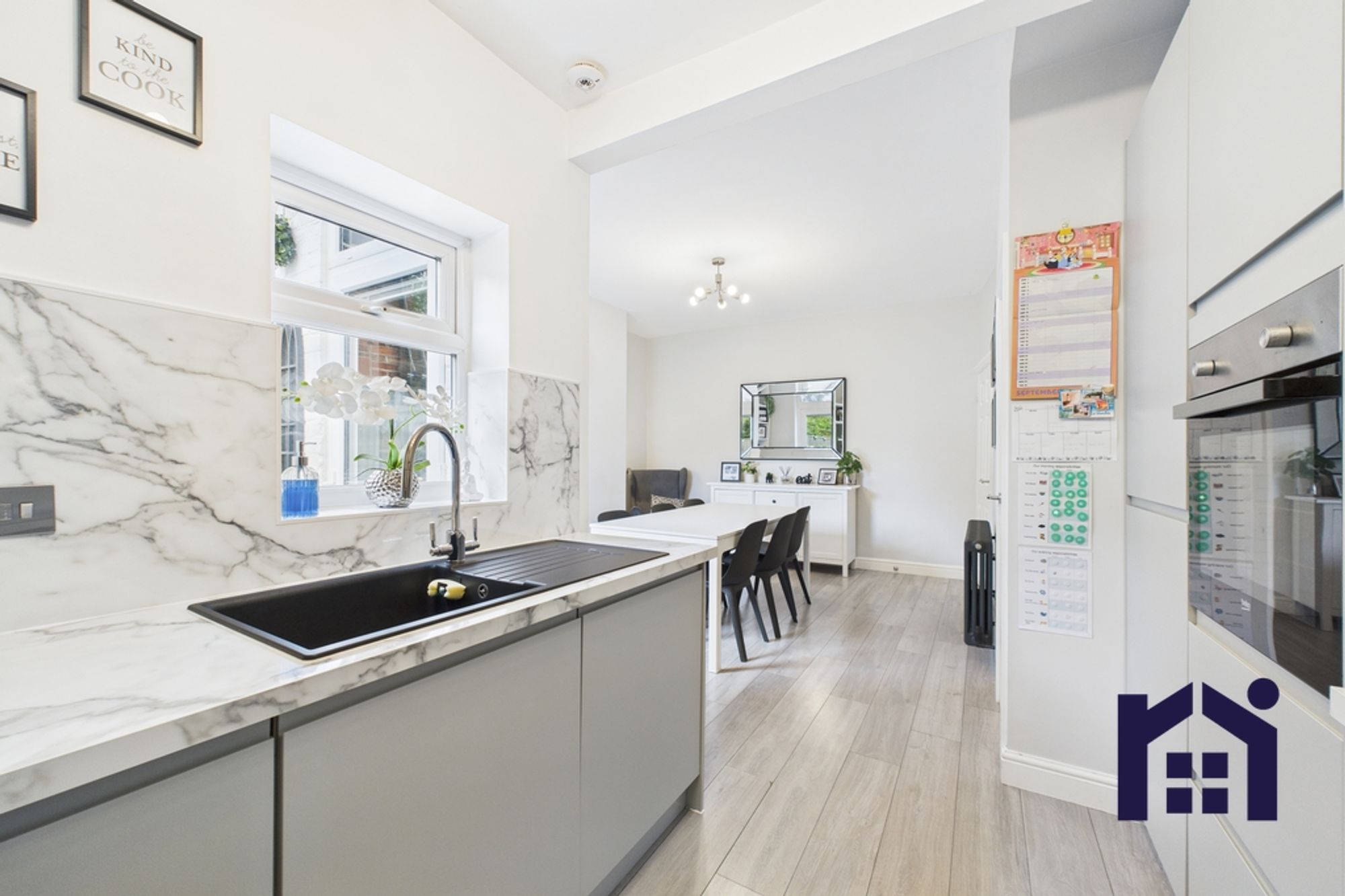 Step through the gate into the low maintenance front garden which leads to the main entrance with vestibule and welcoming hallway. The bay fronted living room has cast iron feature fireplace on a slate bed whilst to the rear, the heart of the home has space for both dining and comfortable furniture with the kitchen leading off comprising a range of wall and base units with electric hob, oven & grill, refrigerator, freezer, dishwasher and space, power & plumbing for additional appliances.