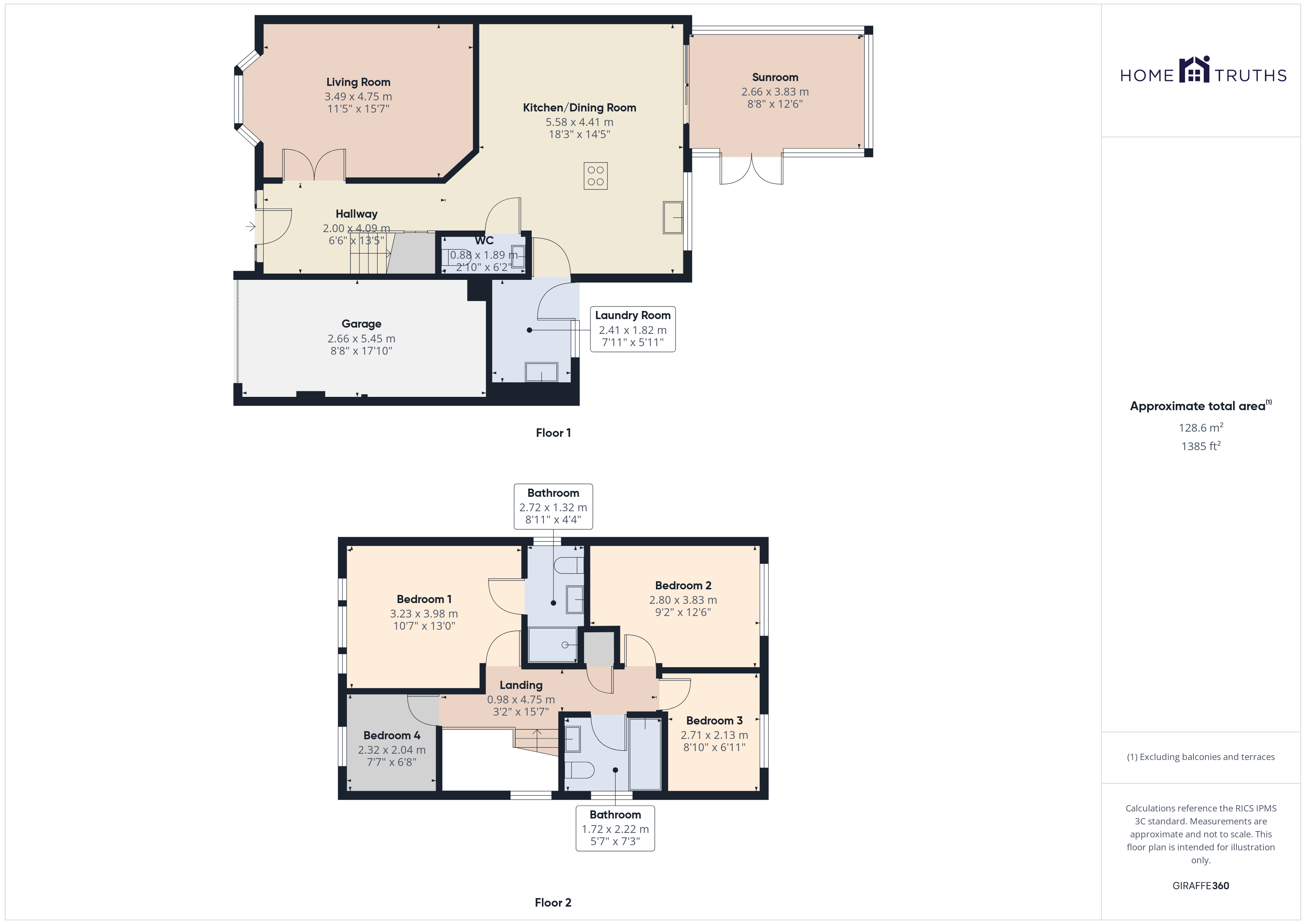 To the first floor, bedroom one benefits from fitted wardrobes and en suite comprising rainfall mixer shower in cubicle, wash hand basin and wc in vanity, and ladder heated towel rail.  Bedroom two is also a double with bedrooms three and four being very comfortable singles.  The family bathroom comprises linoleuem tile effect flooring, tiled elevations, bath with screen and shower attachment, wash hand basin, wc and ladder heated towel rail.