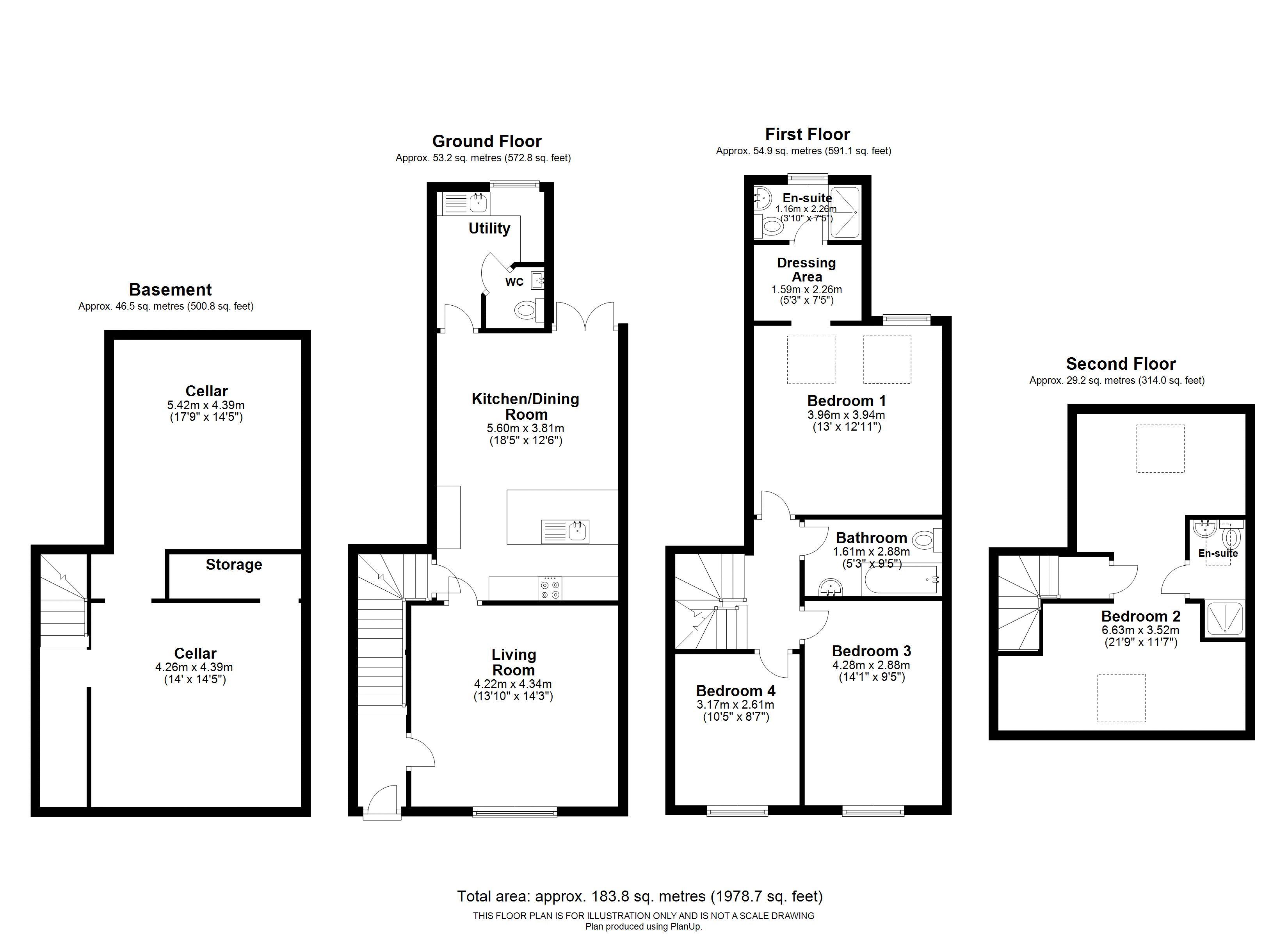 The second floor hosts a further bedroom with roof lights and ample storage, along with an en suite comprising an electric shower, wash hand basin, WC and ladder heated towel rail.
