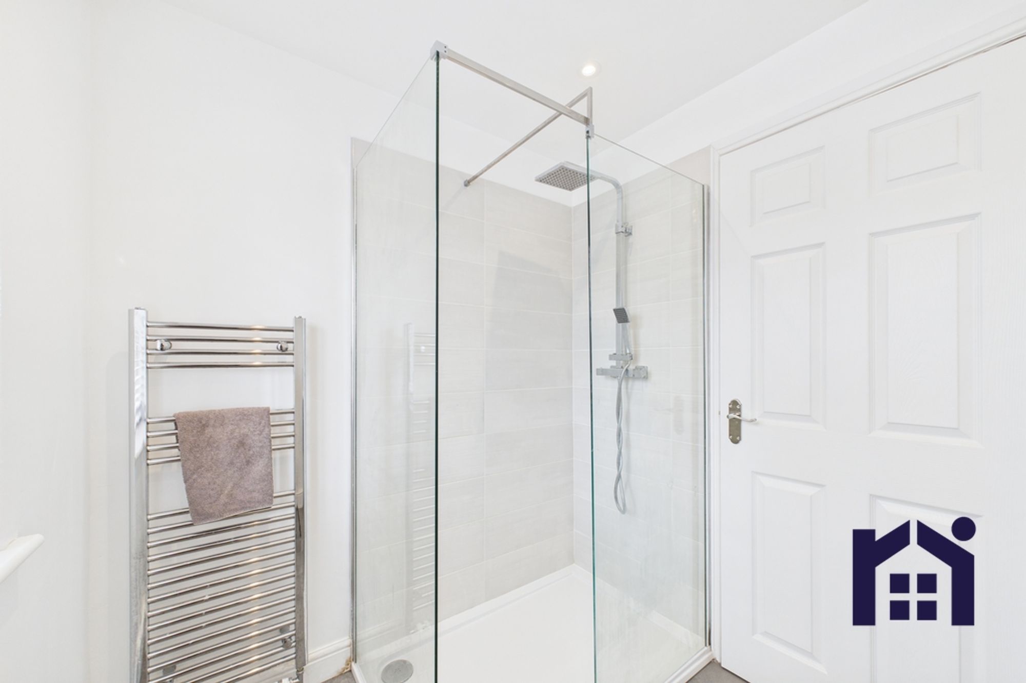 Back inside, stairs lead to the first floor landing with airing cupboard and access to the part boarded loft. The master bedroom benefits from dressing room with built in wardrobes and en suite comprising rainfall mixer shower in walk in cubicle, wc, floating wash hand basin and ladder heated towel rail.