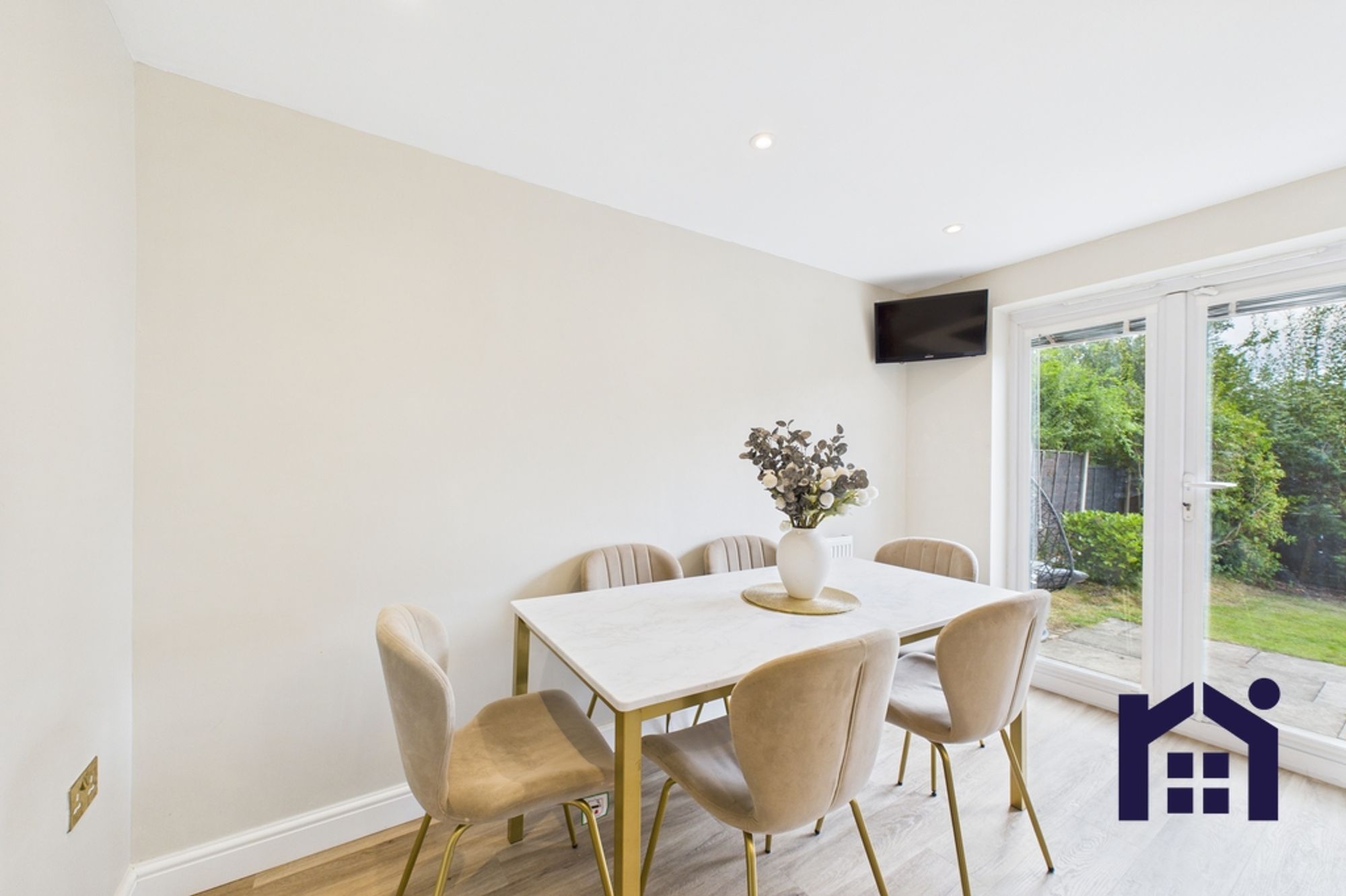 The dining kitchen has been recently fitted and comprises a range of wall and base units topped with quartz work surfaces with integrated appliances including electric oven and grill & microwave by Neff, downdraft induction hob on the central island, refrigerator, freezer and dishwasher. Patio doors overlook the garden.