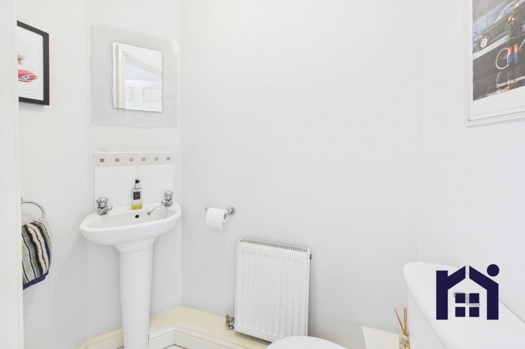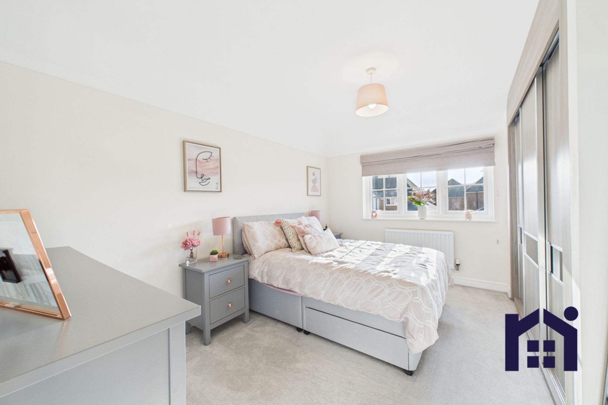 To the front is the serene living room, while to the rear lies the heart of the home – an impressive open-plan space with bi-fold doors opening to the garden, creating a wonderful flow between indoors and out. There’s ample room for dining and relaxation, complemented by a stylish kitchen featuring a range of wall and base units topped with quartz work surfaces and etched drainer, and integrated appliances including an induction hob, multi-oven, electric oven and grill, refrigerator and freezer. A separate utility room provides space, power & plumbing for additional appliances and houses the Ideal Logic combi boiler.