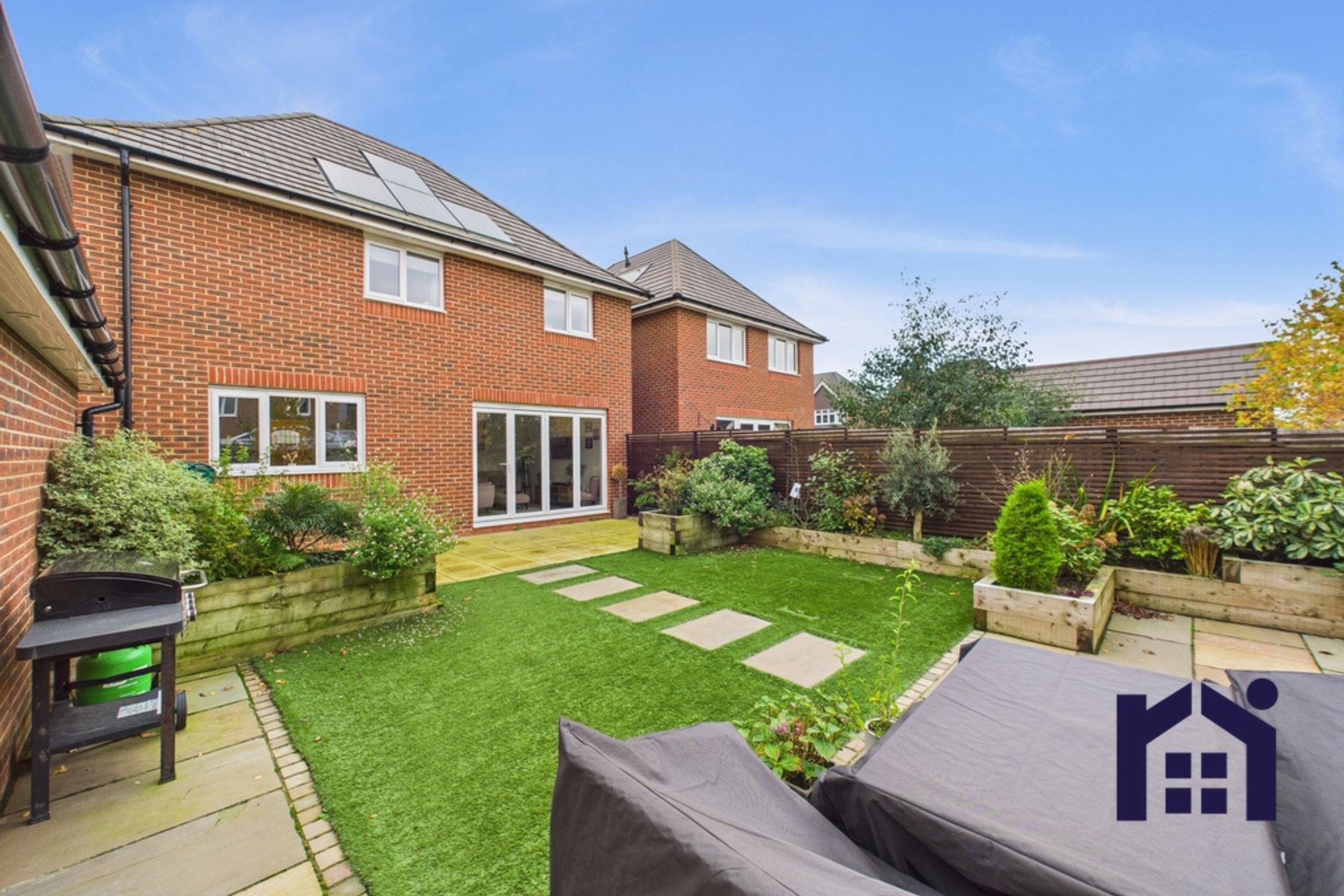 Outside, the low-maintenance rear garden is thoughtfully landscaped with a breakfast terrace, lazy lawn, and raised beds with mature planting for privacy leading to an Indian stone sun terrace and hot tub area, perfect for relaxing or entertaining.