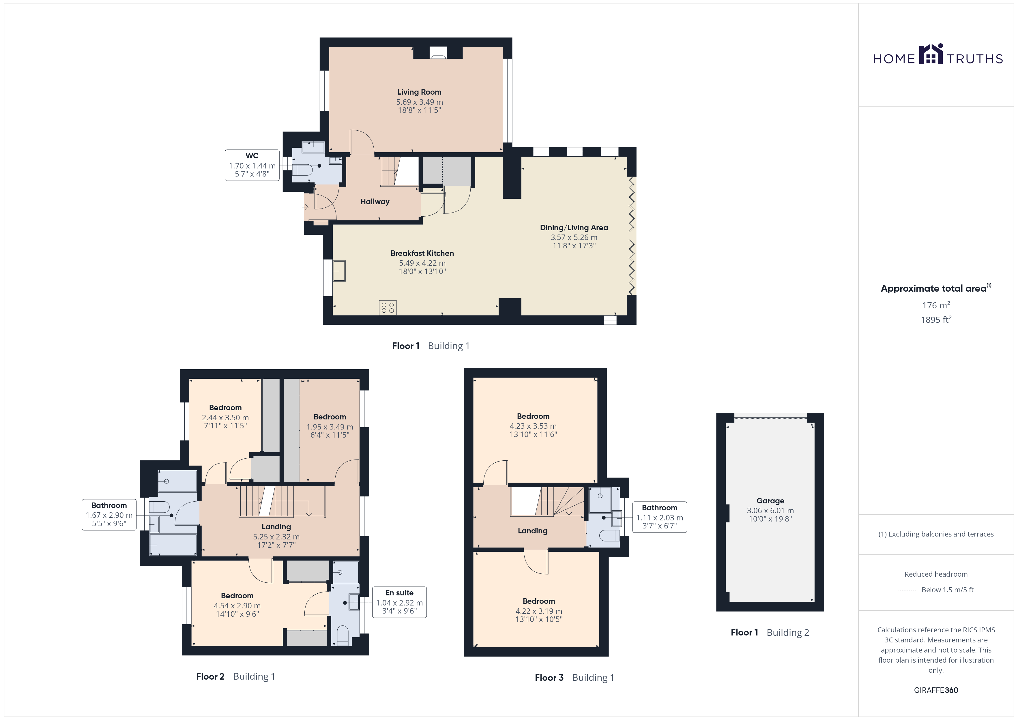The second floor offers two particularly generous double bedrooms along with an additional bathroom complete with shower, WC and wash hand basin. A spacious landing area and useful eaves storage add further practicality.