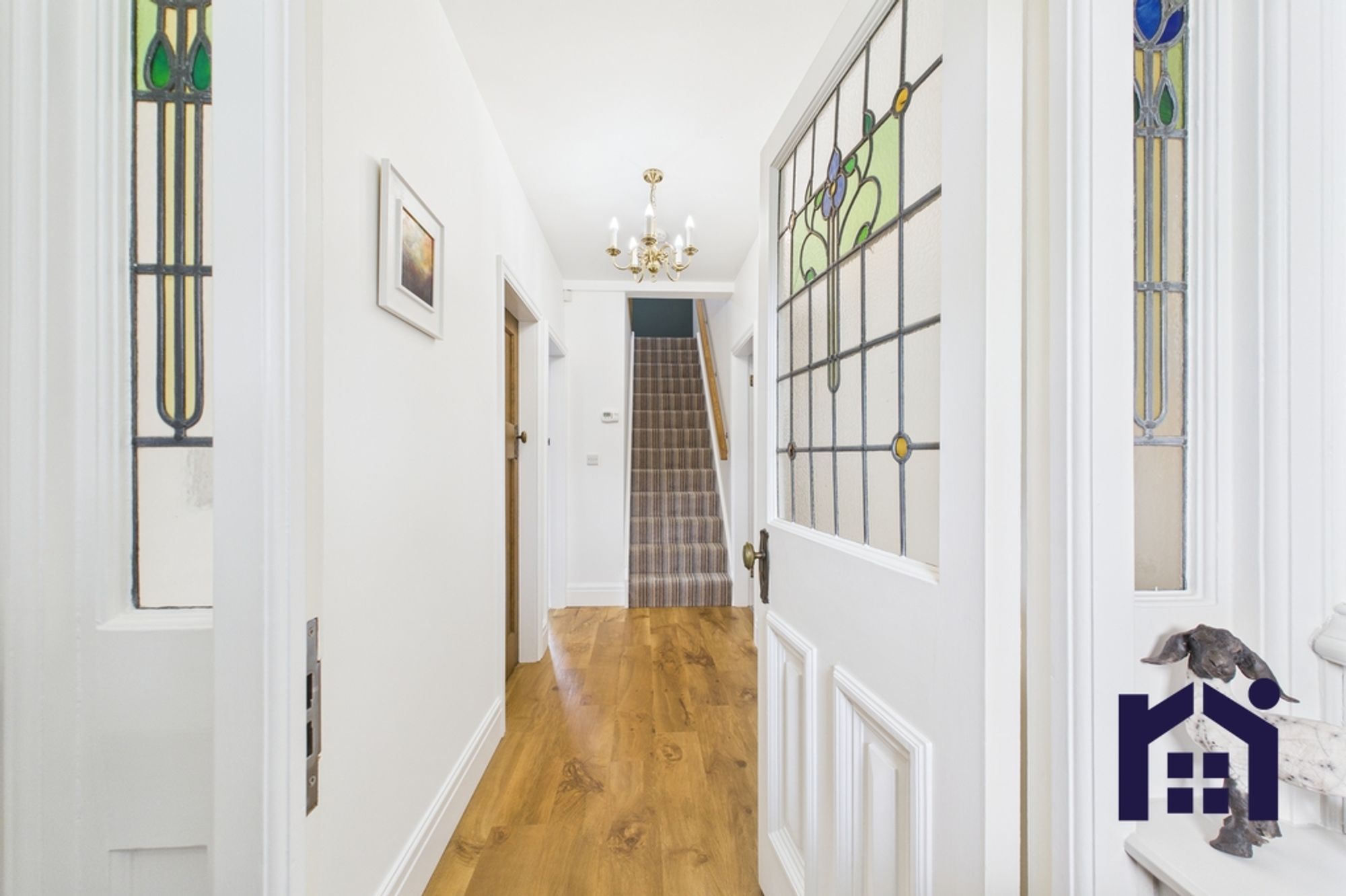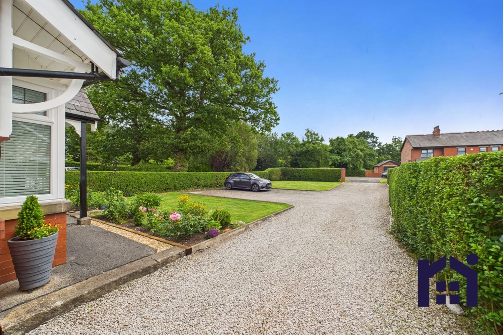 Set well back from the road the property benefits from ample parking with the driveway also able to accommodate a caravan or motorhome. Two lawns with vibrantly planted borders lead to the main entrance with courtesy porch. Step into the vestibule and from there to the wide and welcoming hallway.