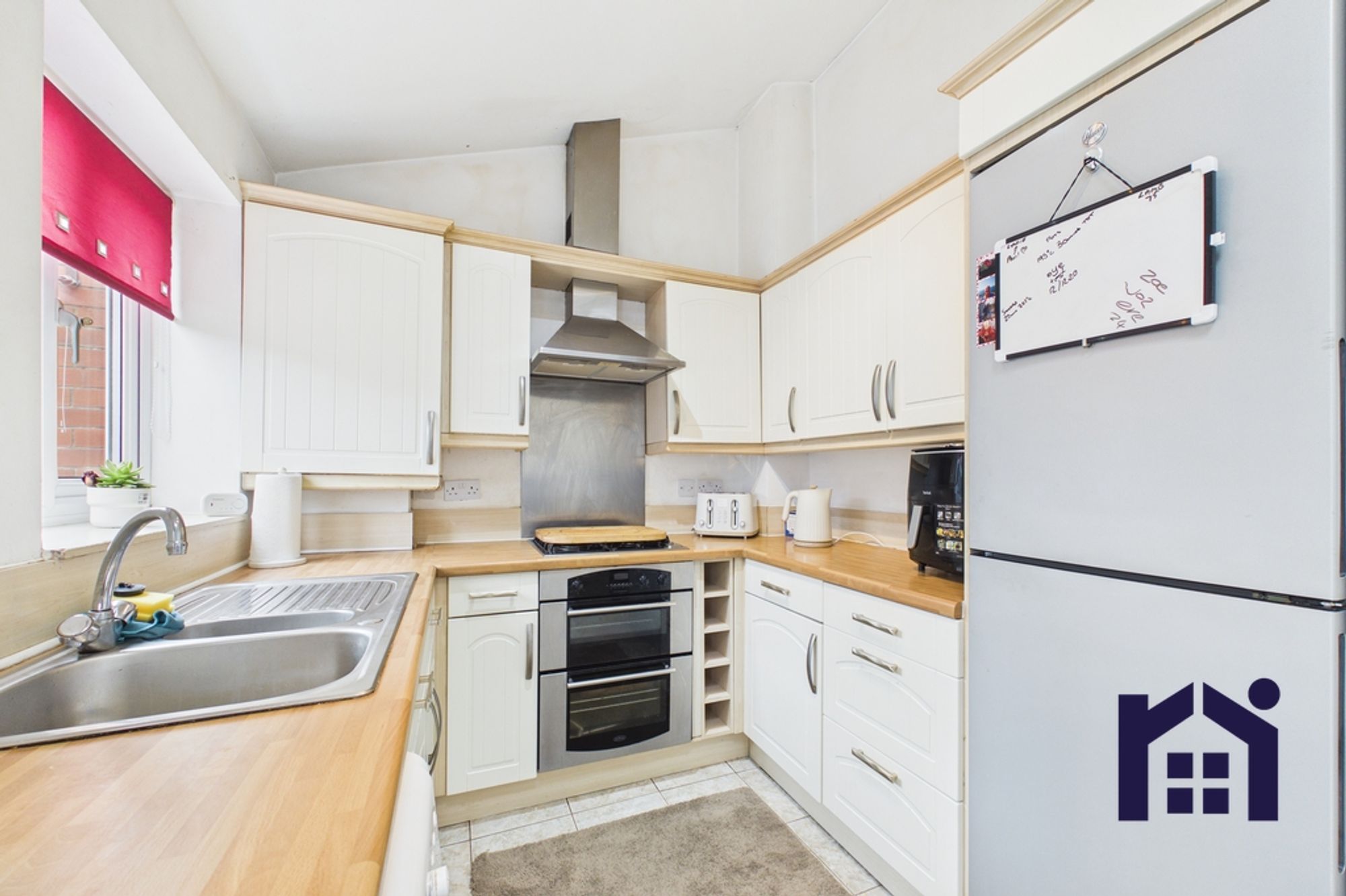 To the rear is the kitchen, fitted with an integrated oven and gas hob, along with space and plumbing for a washing machine and space for a fridge freezer. There is also room for a small breakfast seating area.
