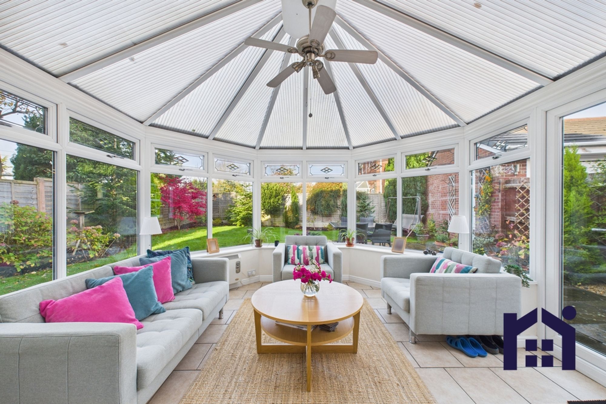 To the left is the snug or home office, whilst to the right the living room runs the full depth of the property with plenty of natural light from windows to two elevations. The individual dining room has French windows leading to the conservatory overlooking the garden. Completing the ground floor, is the breakfast kitchen comprising a range of wall and base units with integrated gas hob, electric oven and grill, refrigerator, freezer and dishwasher. A separate utility room has space, power & plumbing for appliances including the central heating boiler.