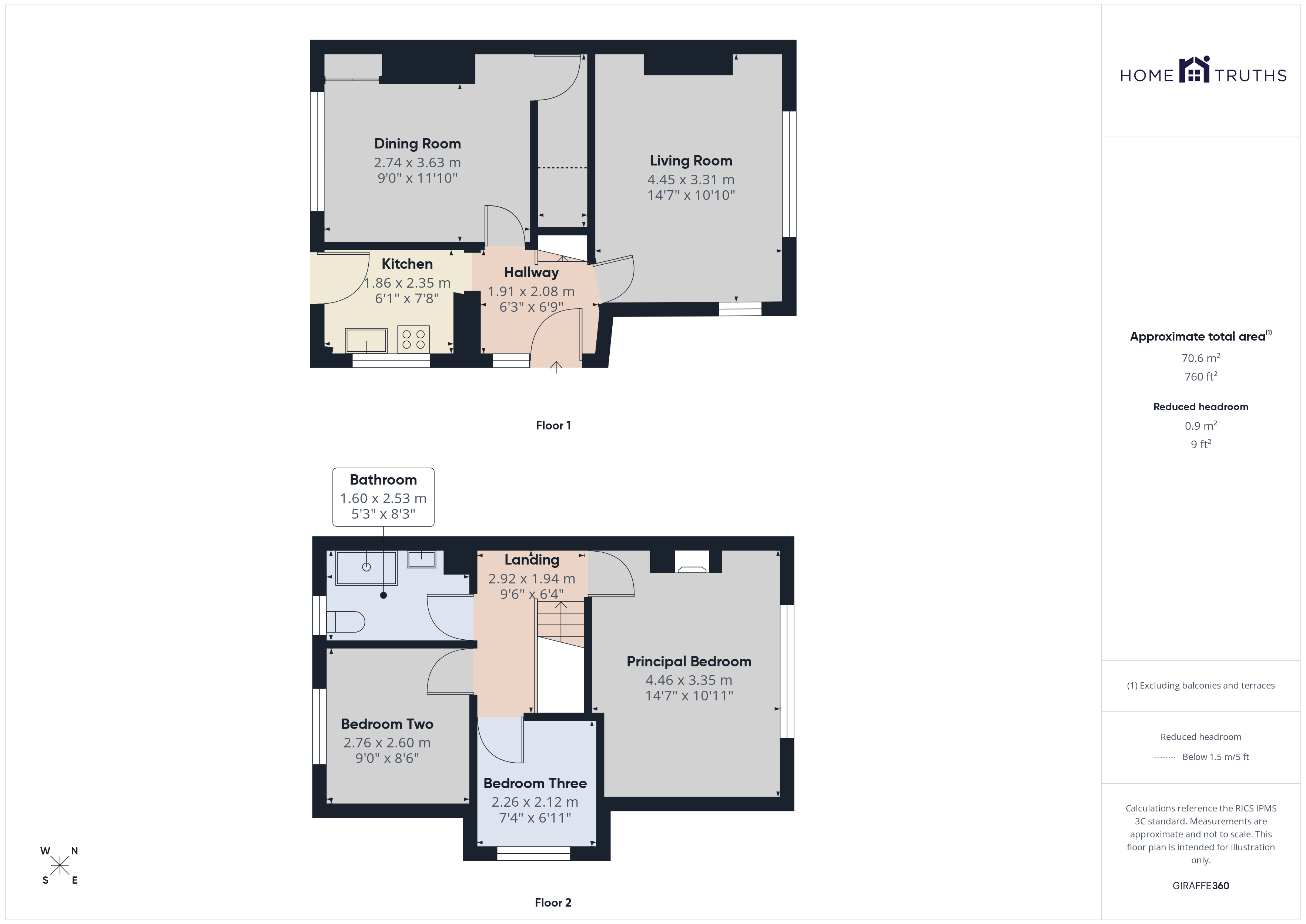 To the first floor, bedroom one is a well-proportioned double. Bedrooms two and three are comfortable singles, with bedroom three currently housing the Ideal Logic combi boiler. Completing the accommodation, the modern bathroom comprises rainfall mixer shower in cubicle, wash hand basin on vanity, wc and ladder heated towel rail.
