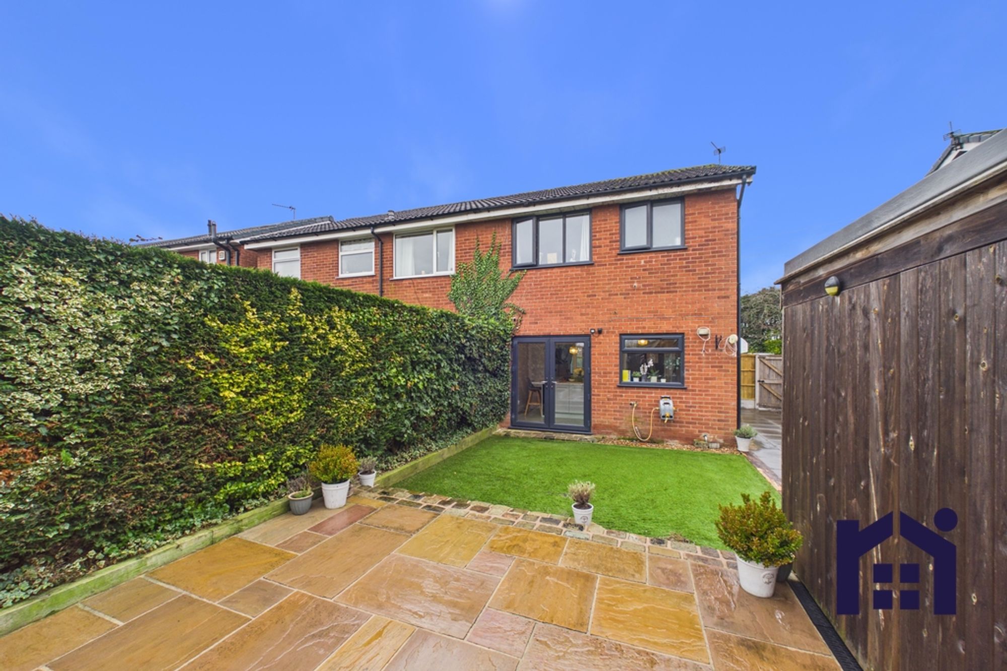 Step outside onto the lazy lawn leading to the Indian stone terrace which is the perfect place to relax and entertain with family and friends. The good sized outbuilding comprises utility area and garden room with power and light which would also make an excellent home office.