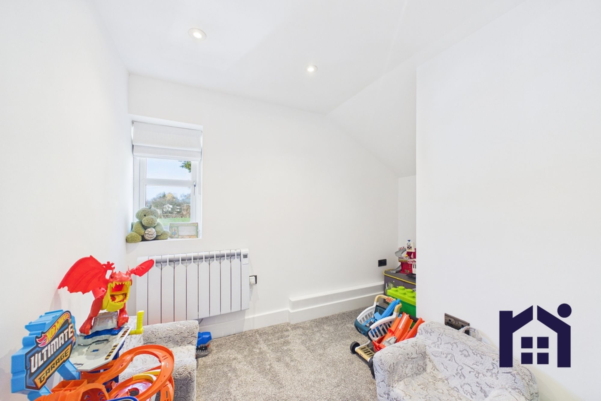 - Living room with feature log burner