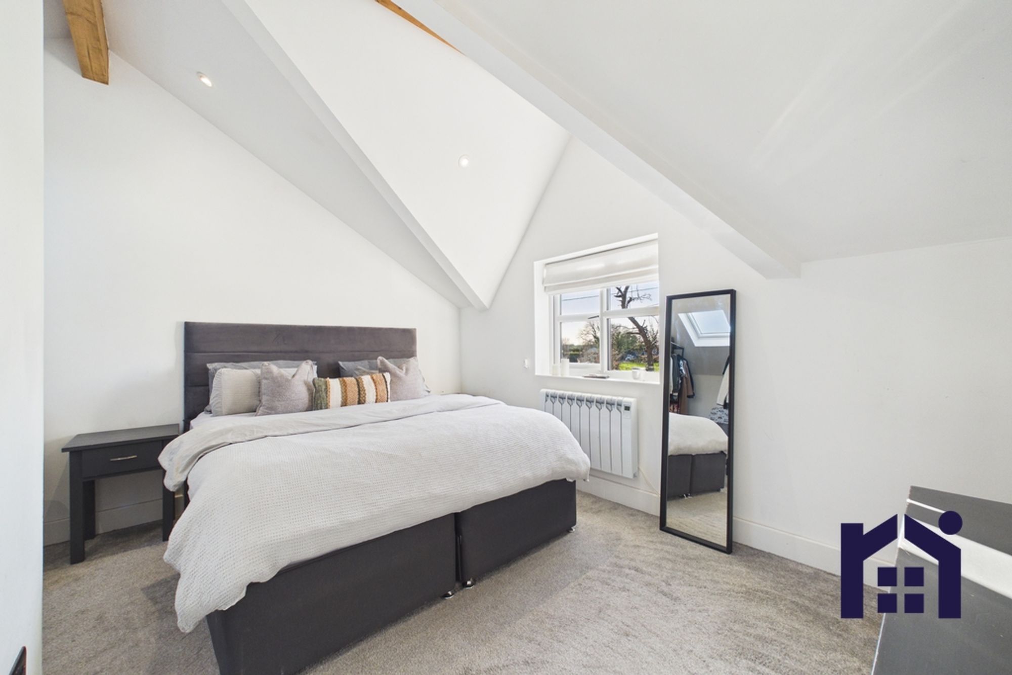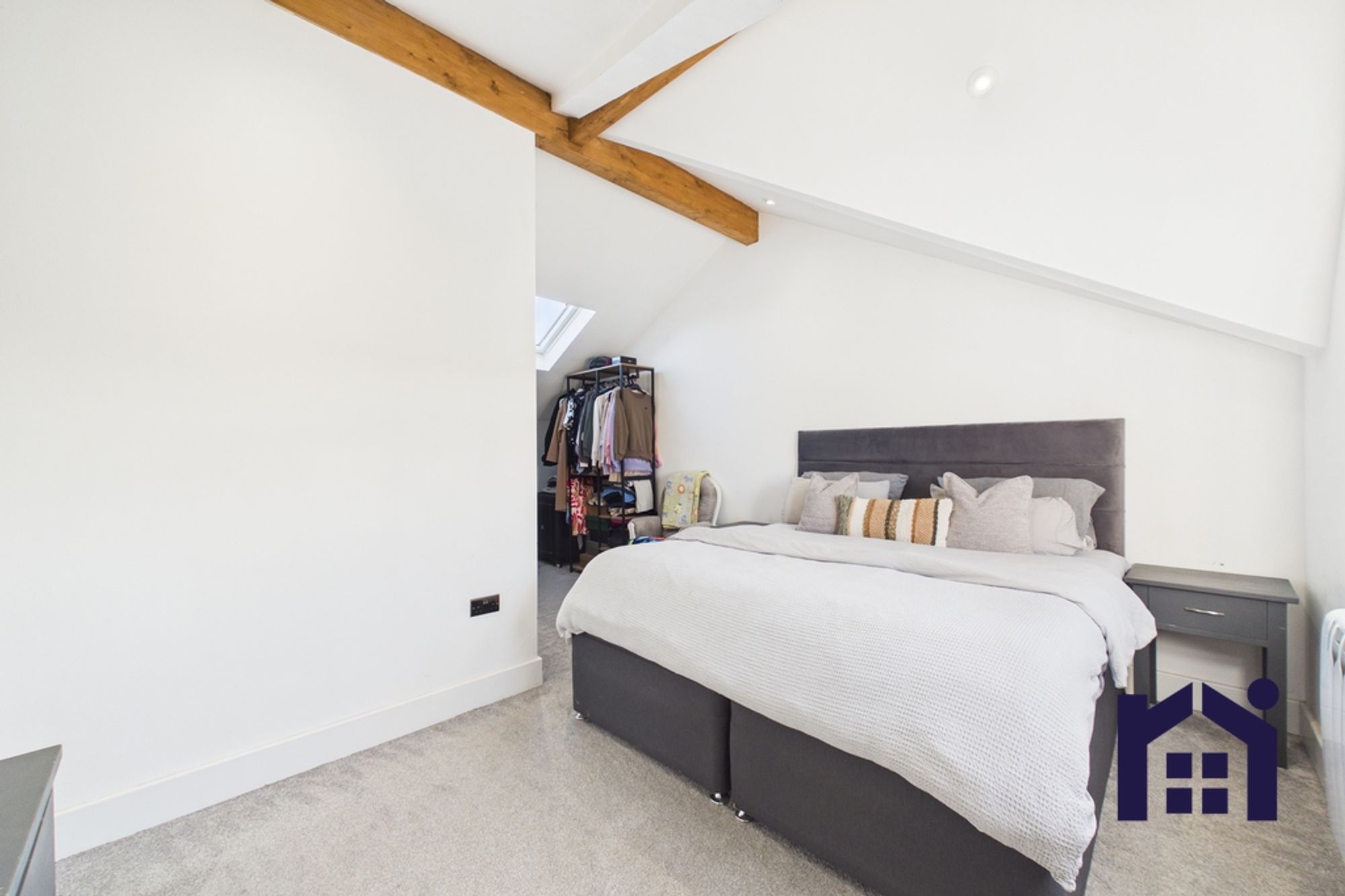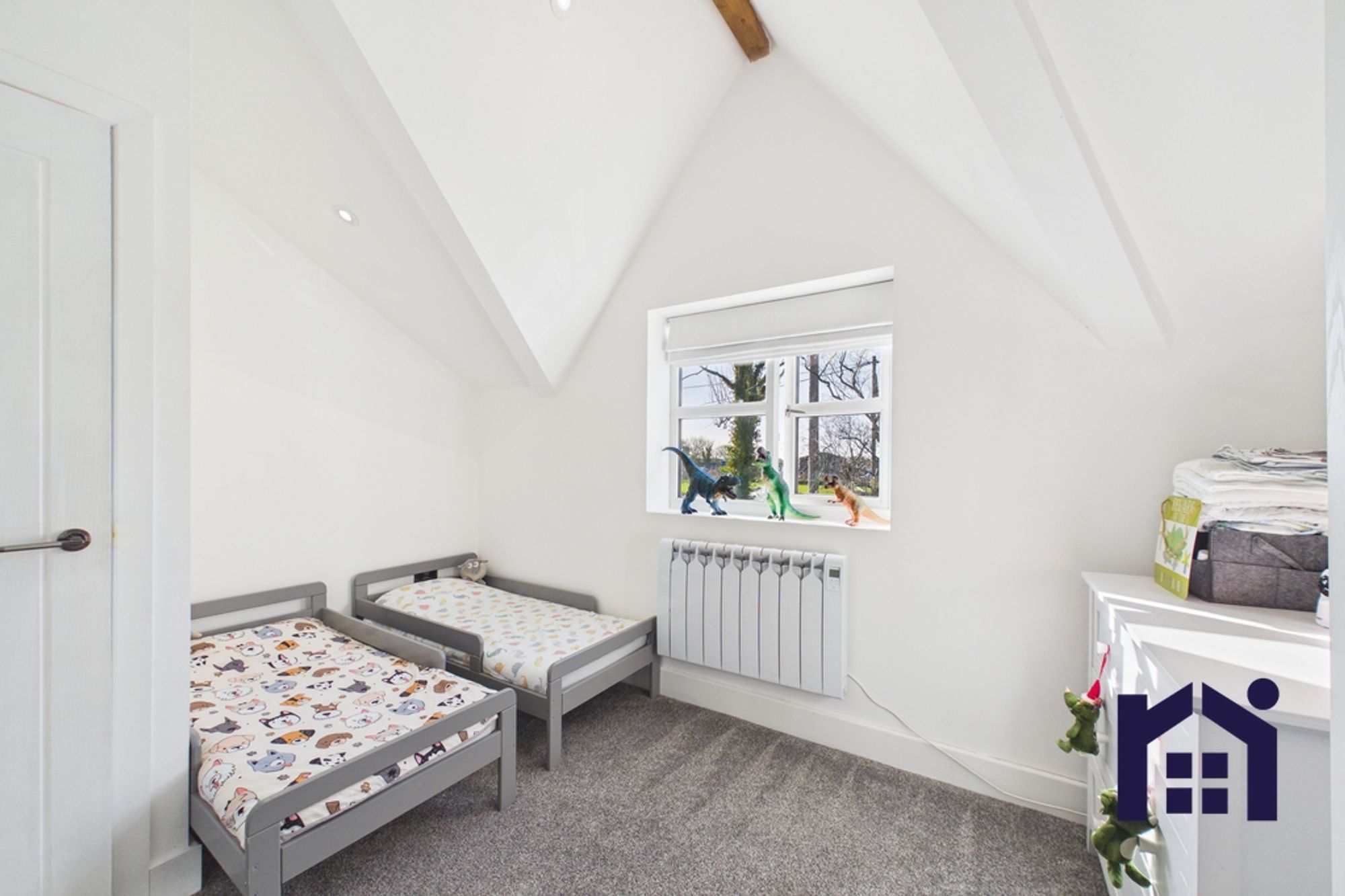 To the first floor are three further bedrooms. The principal bedroom is a spacious double benefiting from its own ensuite bathroom comprising bath, WC and wash hand basin. Two additional single bedrooms offer flexible use, with one currently utilised as a home office. Skylights to the upstairs bedrooms flood the space with natural light, creating bright and airy rooms throughout.