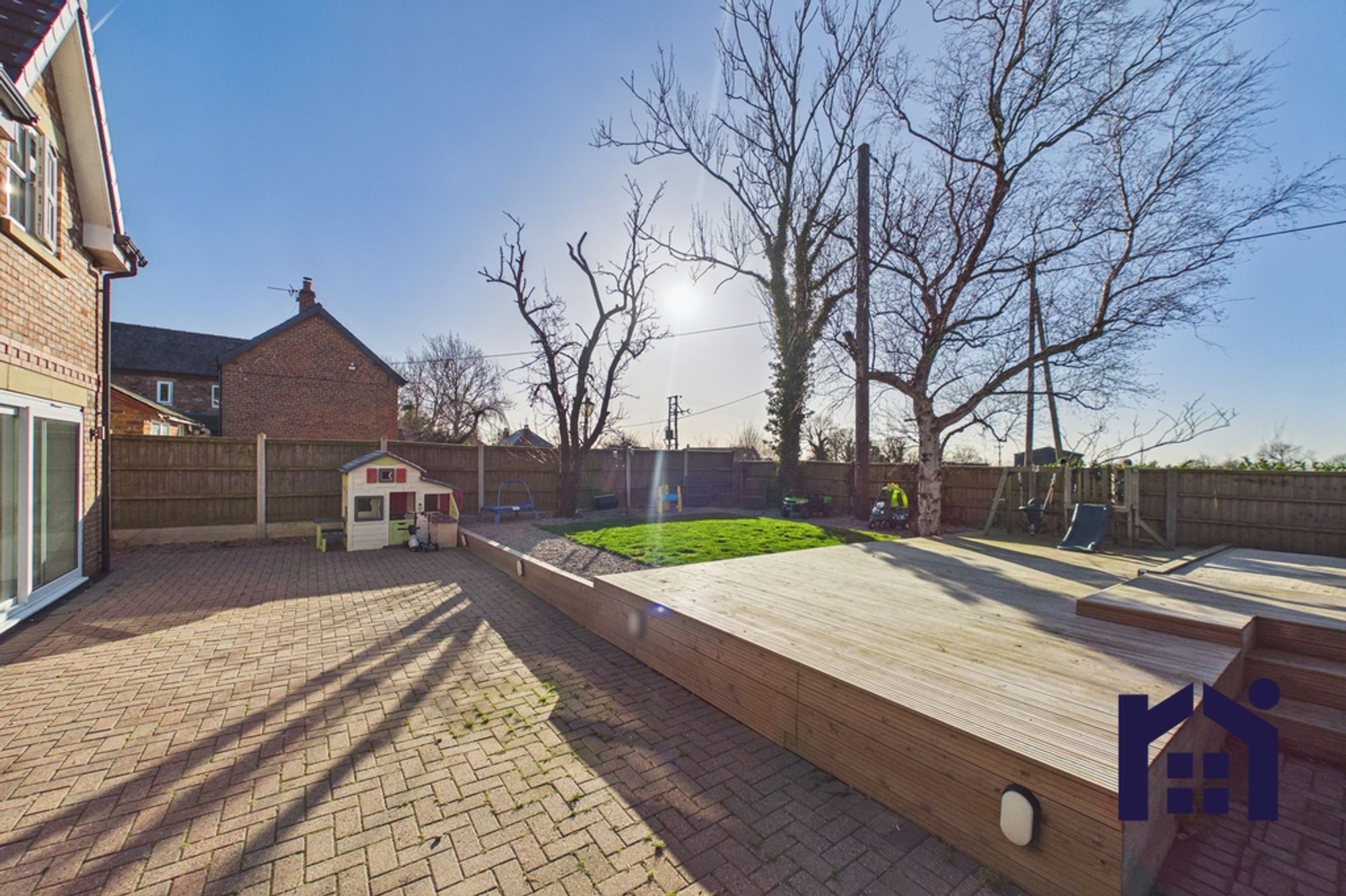 - Low maintenance rear garden with elevated seating area