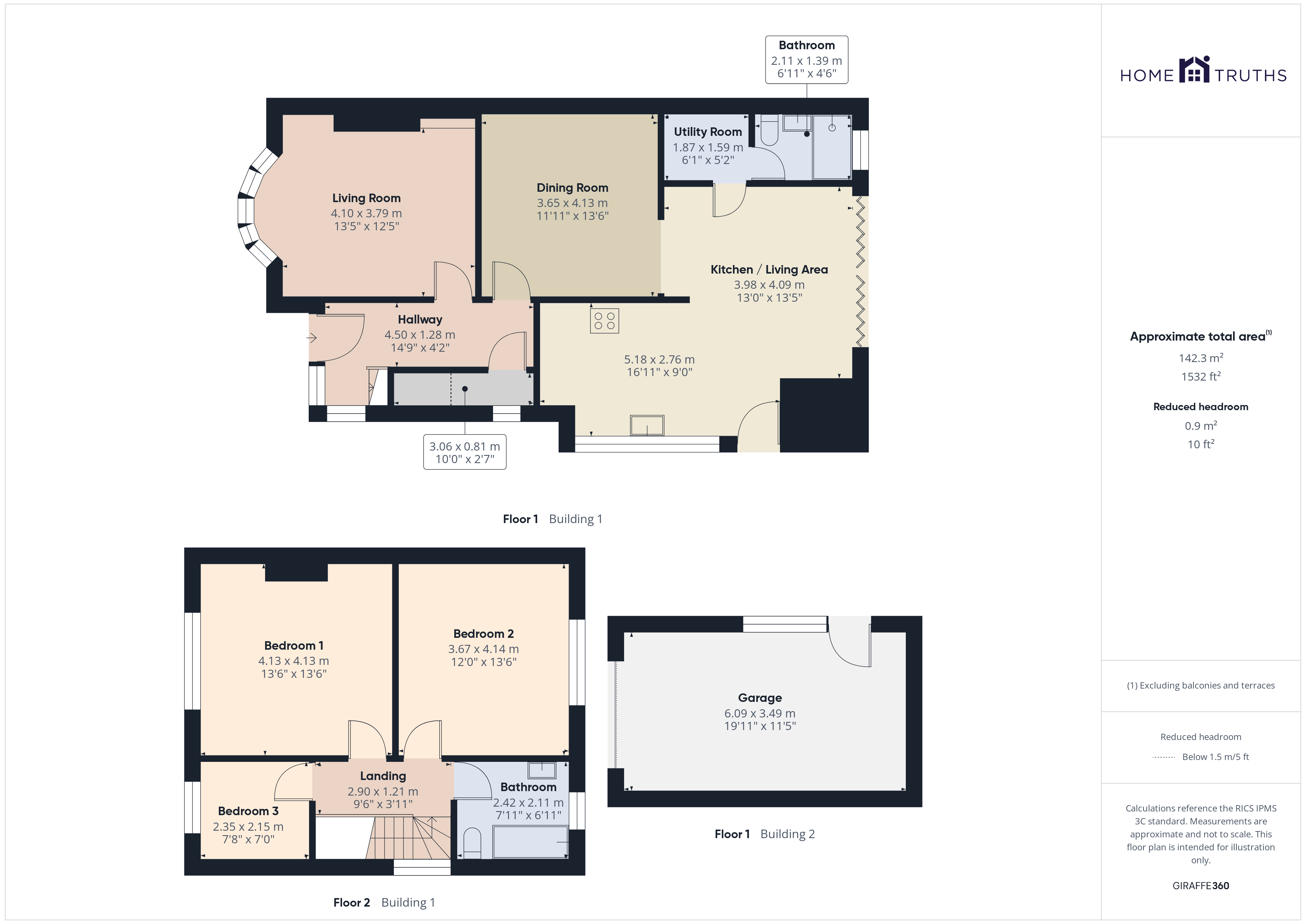 Leading off and completing the ground floor, the separate utility room has space, power & plumbing for additional appliances, including the Worcester combi boiler, and the fabulous wet room comprises rainfall mixer shower, fully tiled elevations and flooring, wc, wash hand basin and ladder heated towel rail.