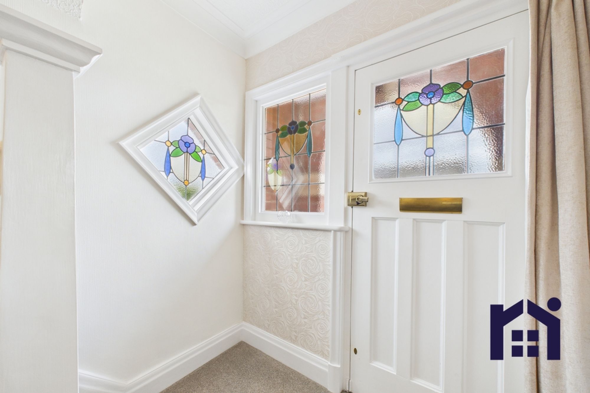 The block paviour driveway can accommodate several vehicles and leads past the lawn to the courtesy porch, with power, and the main entrance. Step into the wide and welcoming hallway with understair storage making the perfect wine store.