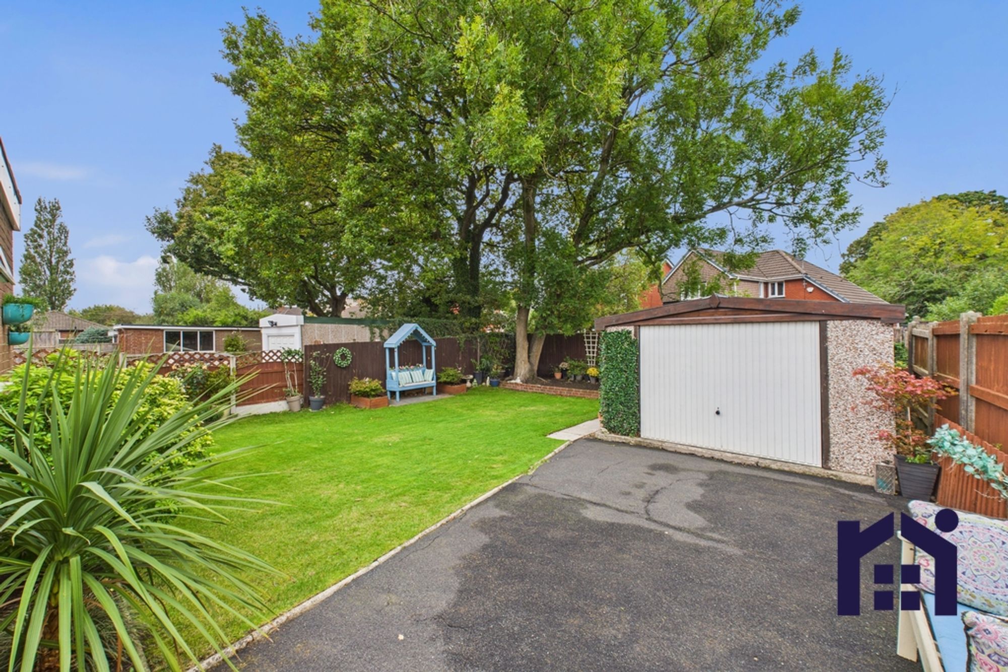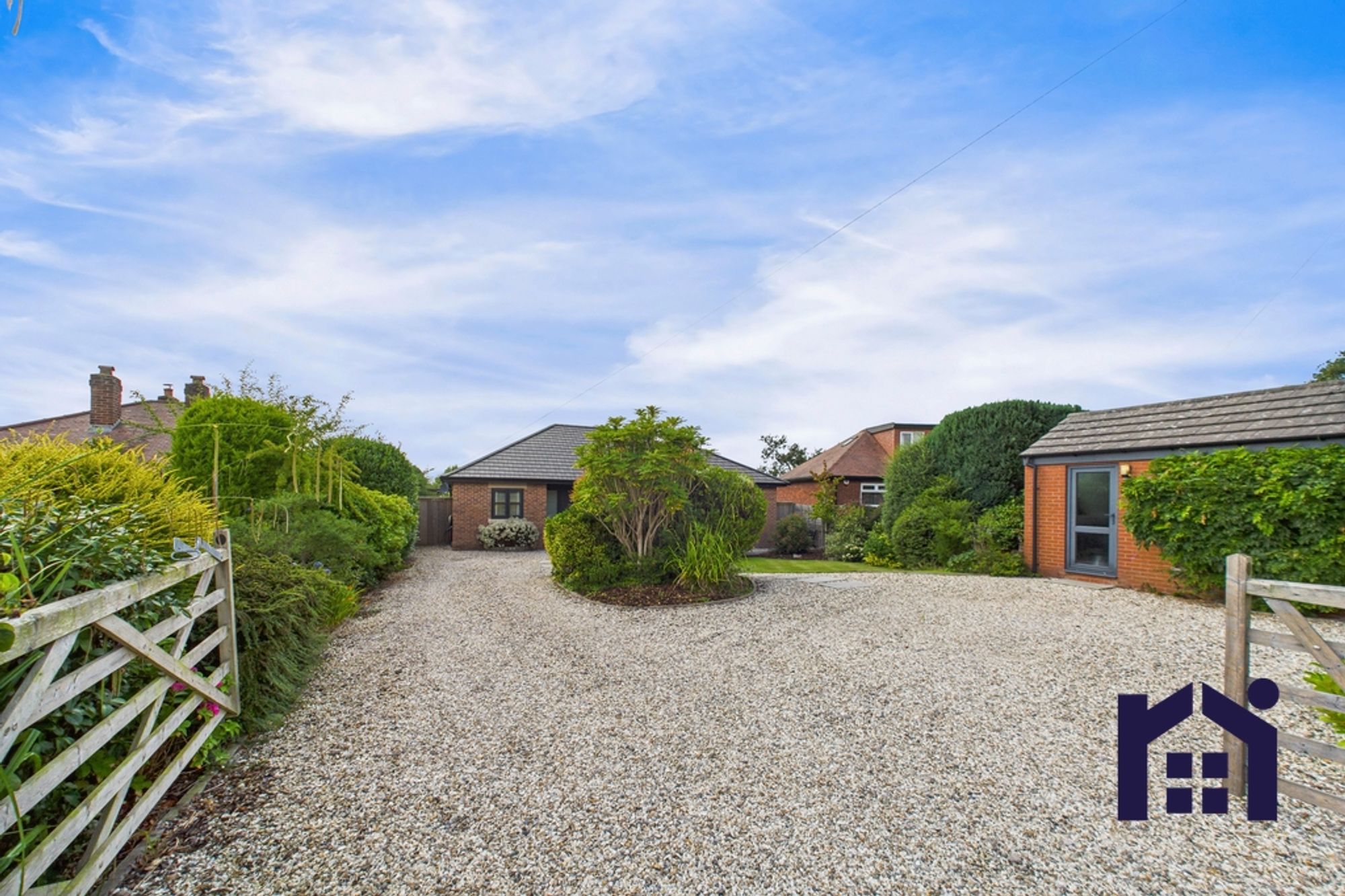 To the front the gravelled driveway has island beds with mature planting including a gorgeous acer, wisteria and evergreen shrubs, and offers ample parking adjacent to the detached garage with power and light.
